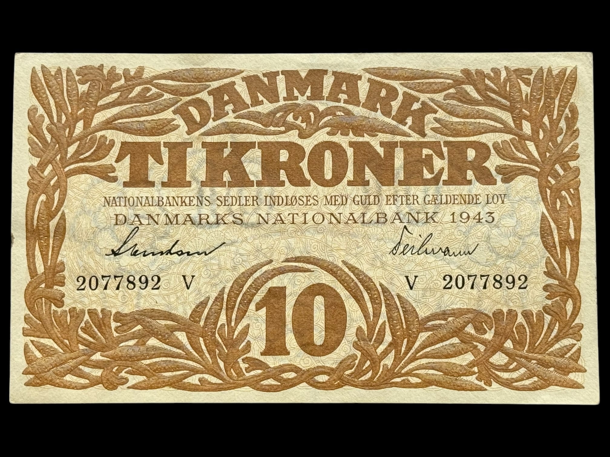 10 krone 1943 V, Svendsen/Teilmann Kva. 0-01