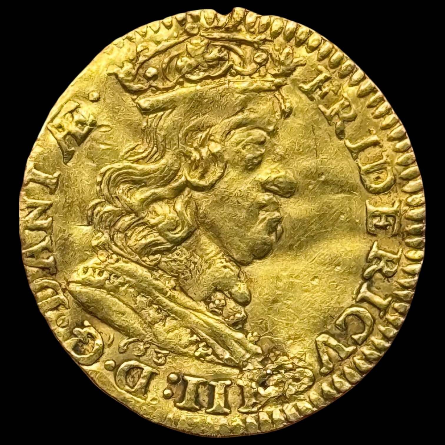 1653, dukat, Fre.III, Sieg 111.1, Hede 11, Kva. 1+ “svage monteringspor” Sjælden