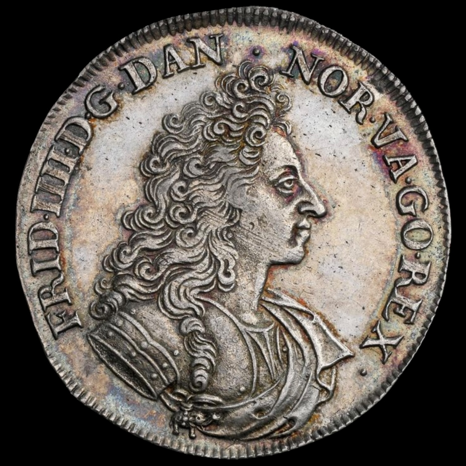 1702, Krone, Fre.IV, Sieg 17, Hede 36, Schou 3, Bruun 7314, Kva. 0-01 svag renset, Graderet UNC Details Cleaned af NGC, Ex. Frederik Chr. Bech Collection (Copenhagen – 1906) Lot 905, Ex. L. E. Bruun Collection.