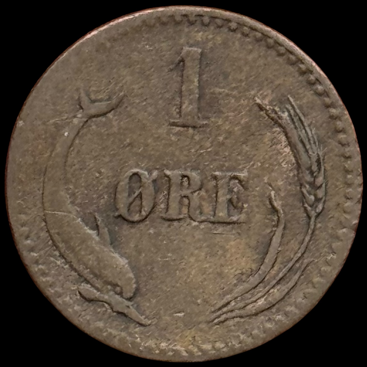 1876, 1 øre, Chr.IX, Sieg 1.1, Hede 19A, Kva. 1-1+