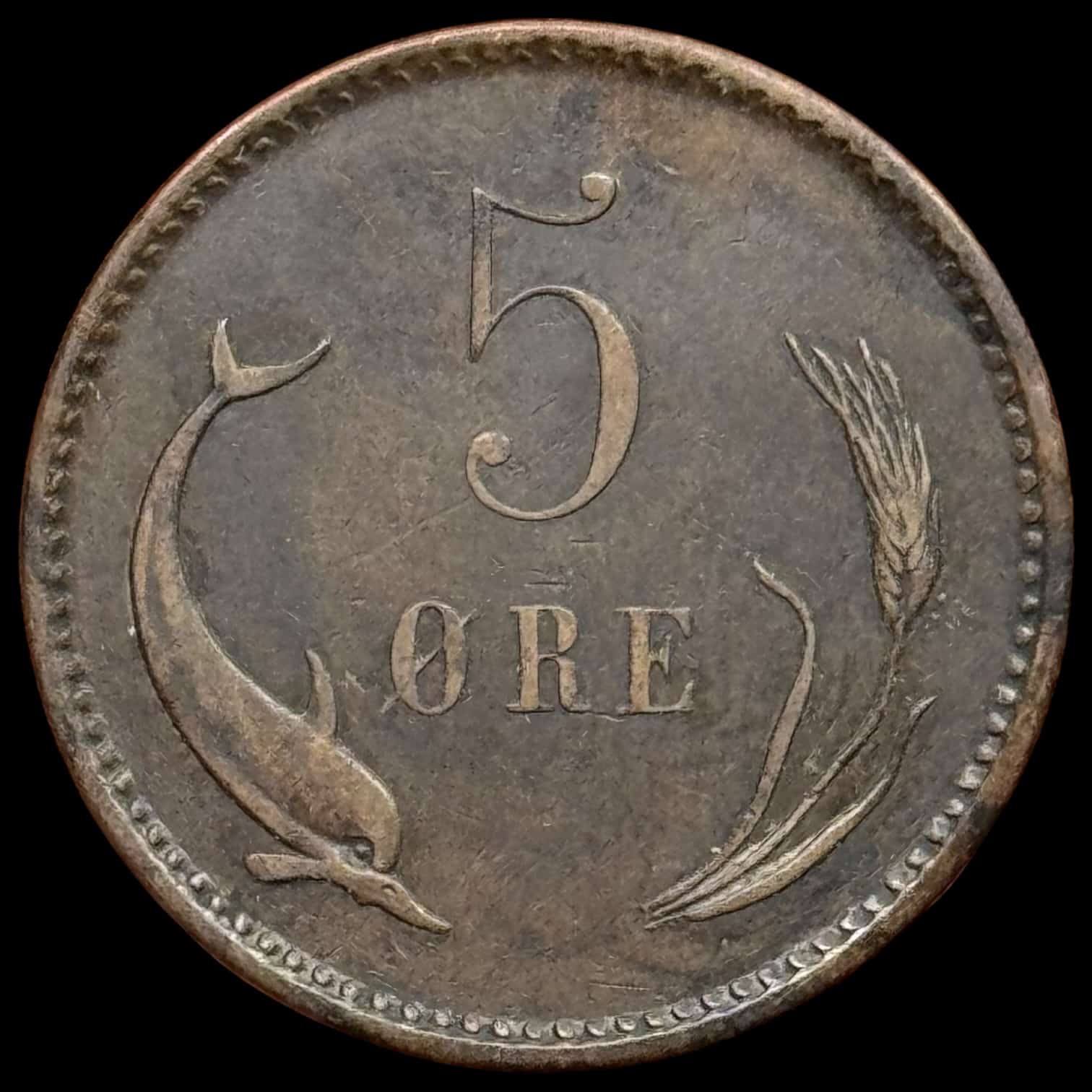 1890, 5 øre, Chr.IX, Sieg 1.1, Hede 17A, Kva. 1+