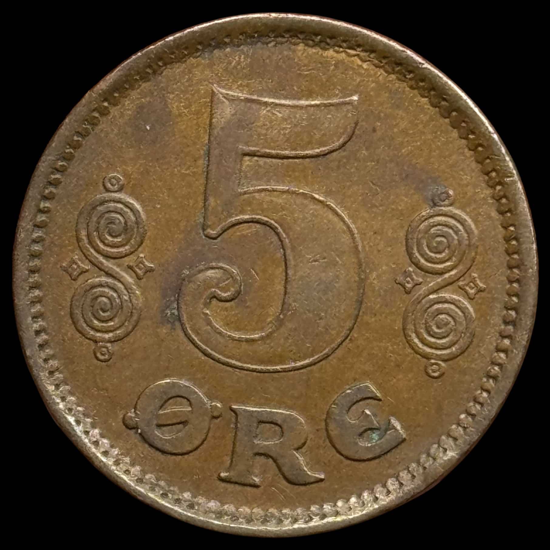 1923, 5 øre, Chr.X, Sieg 3.4, Hede 14B, Kva. 1+