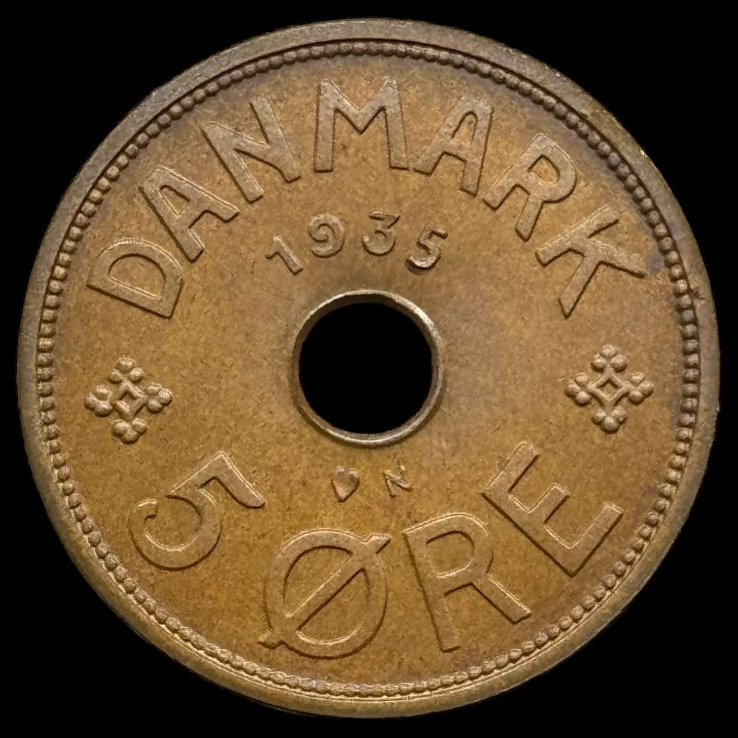 1935 5 øre Chr.X, Sieg 4.2 Hede 28B, Kva. M “Medaljepræg”