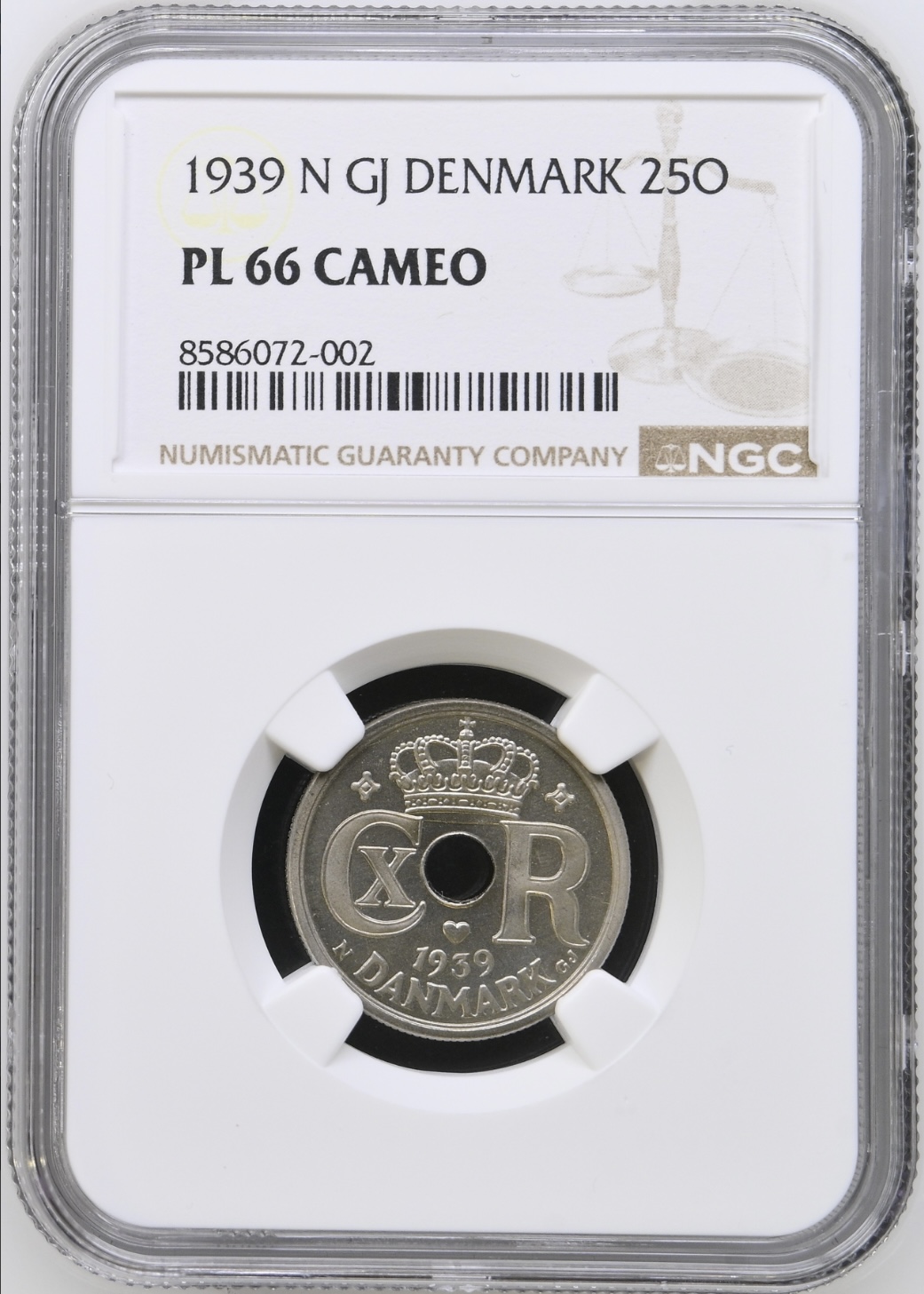 1939, 25 øre, Chr.X, Sieg 4.2, Hede 24B, Kva. M, Graderet PL 66 CAMEO (TOP POP)