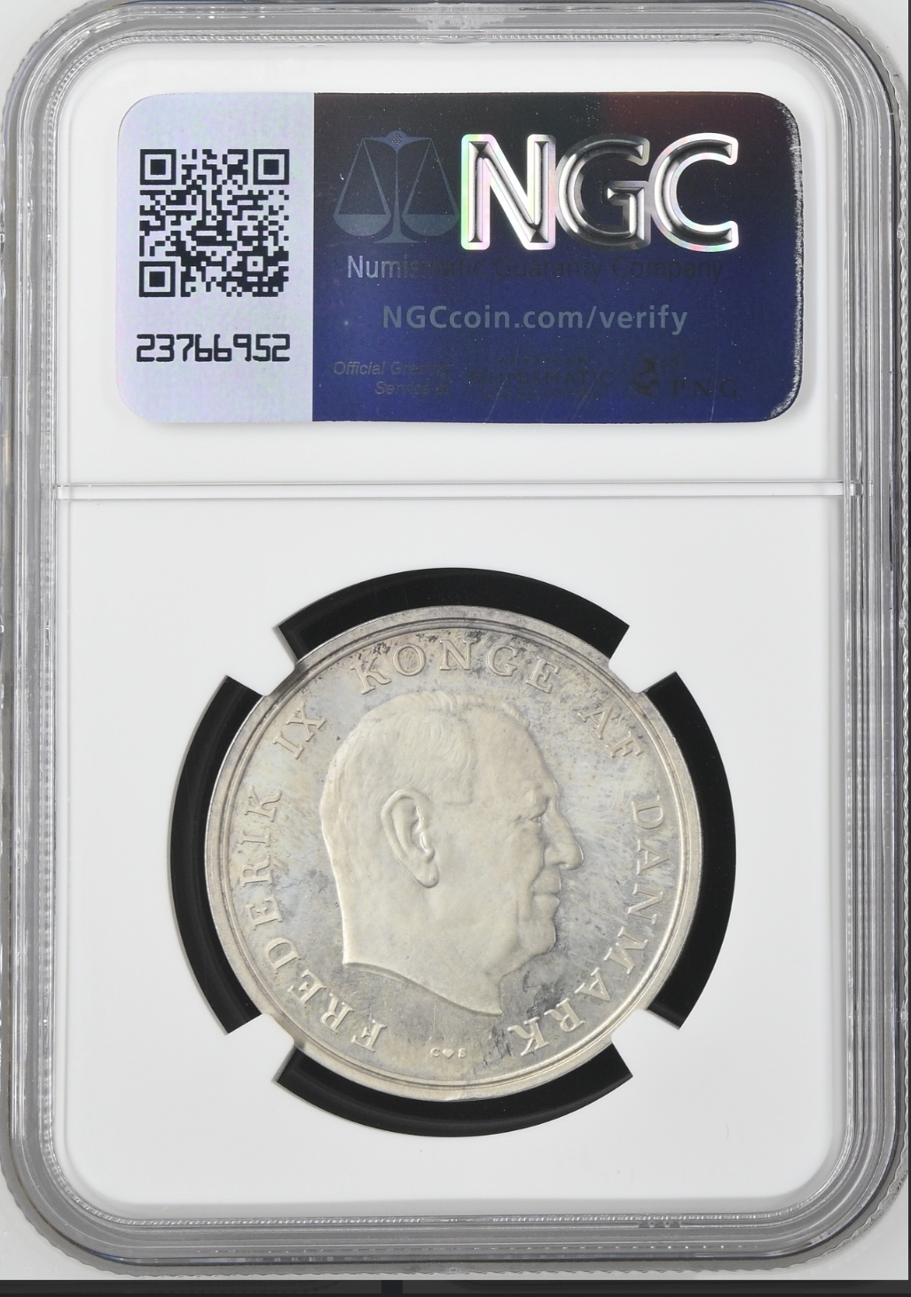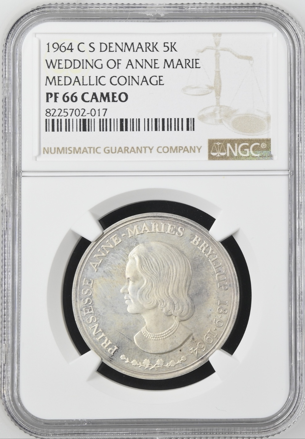 1964 Ministereksemplar, (5 kroner) Uden Værdiangivelse, Prinsesse Anne-Maries bryllup med Kong Konstantion, Sieg 13, Kun lavet i 100 eksemplar, Kva. Proof, Graderet PF 66 CAMEO af NGC