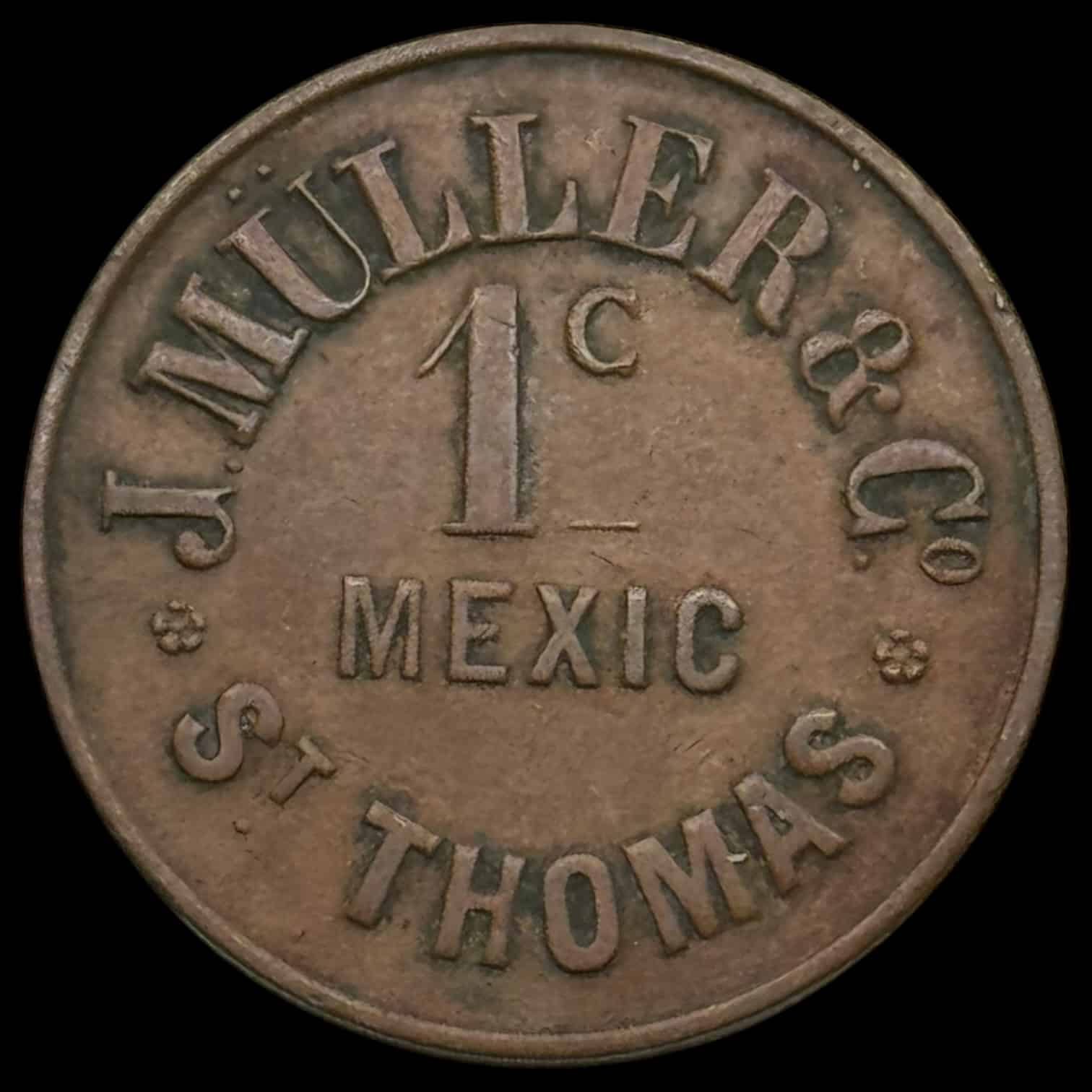 Dansk Vestindien, 1 cent, J. Müller & Co. Sieg 36, OBC 35, Higgie 436, Kva. 1+