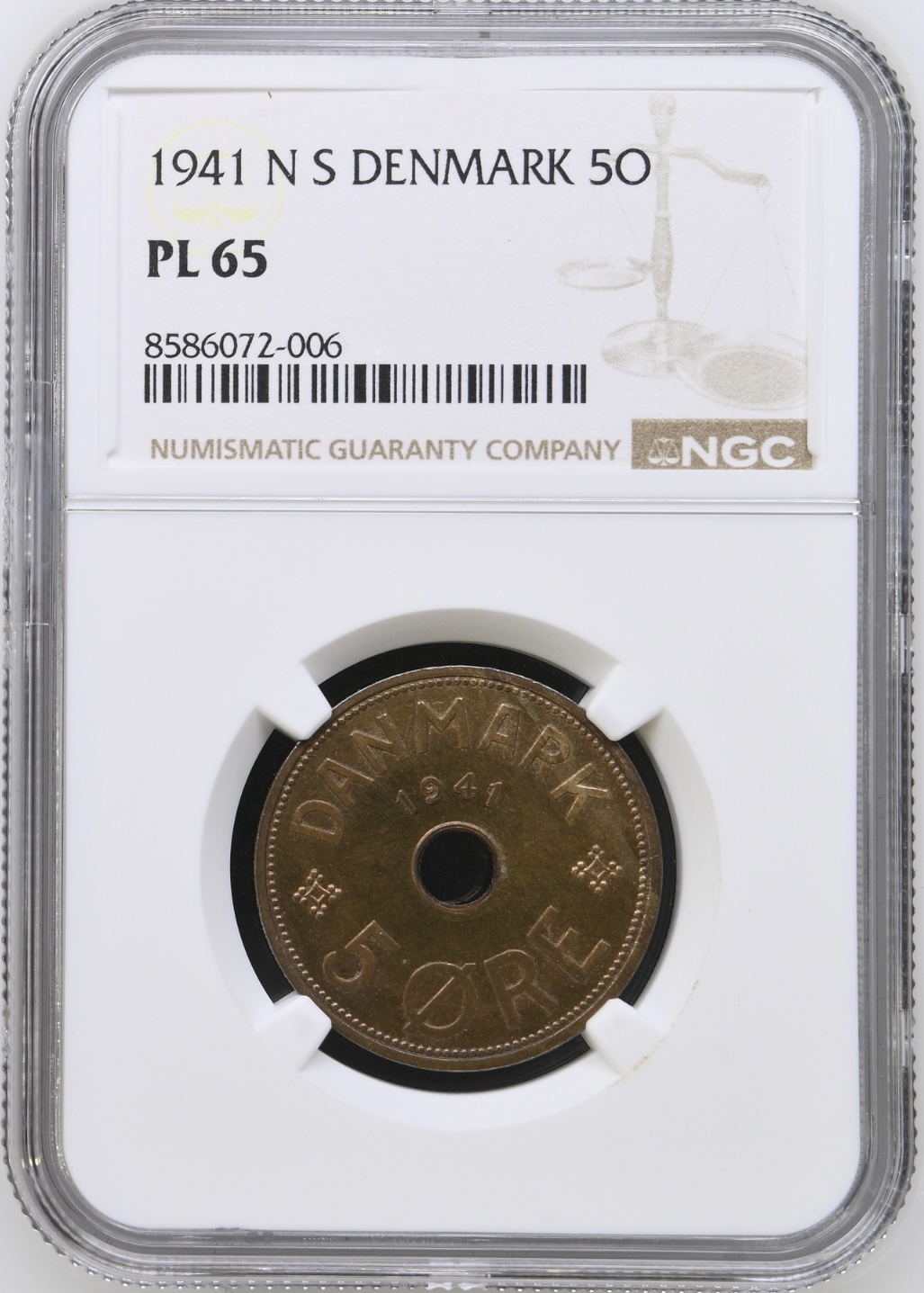 Færøerne, 5 øre 1941, Chr.X, Sieg 3, Hede 28C, Kva. M, Graderet PL 65 af NGC, (TOP POP) eneste PL graderet.