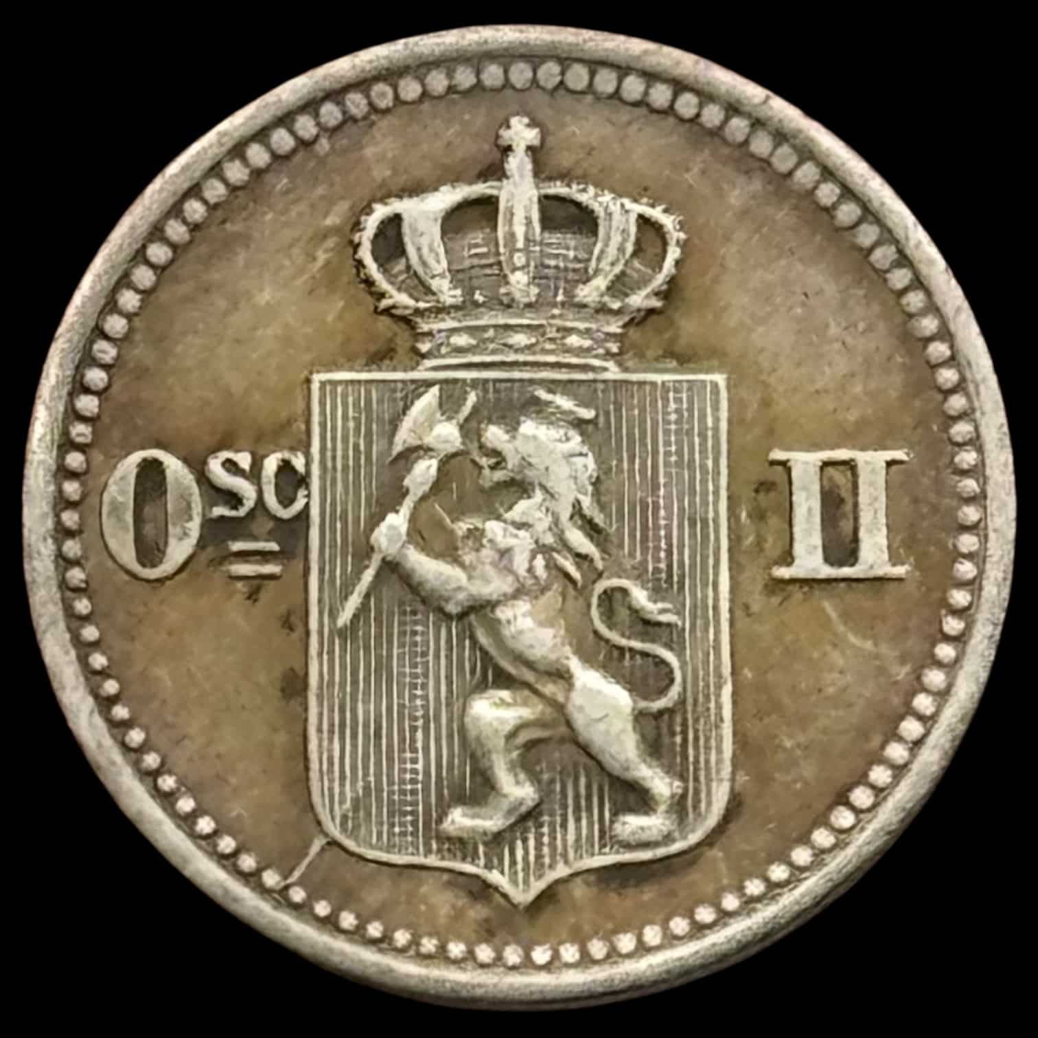 Norge, 10 øre / 3 skilling 1874, Oscar II, Sieg 24 NMD 77, Kva. 1+-01