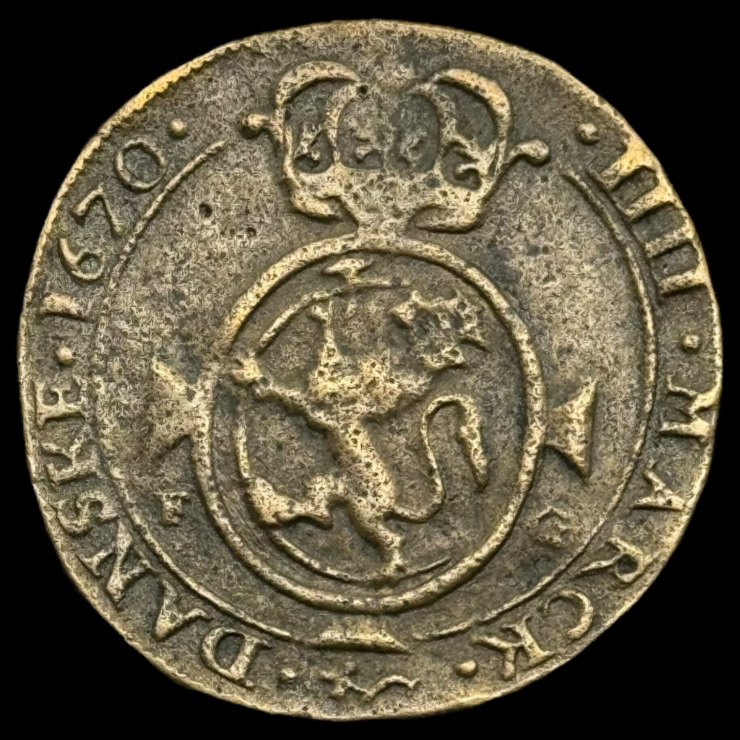 Norge, 4 Mark / Krone 1670 Chr.V, NMD 76A, Hede 41A, Kva. 1-1+ “Samtidsforfalskning / Counterfeit”