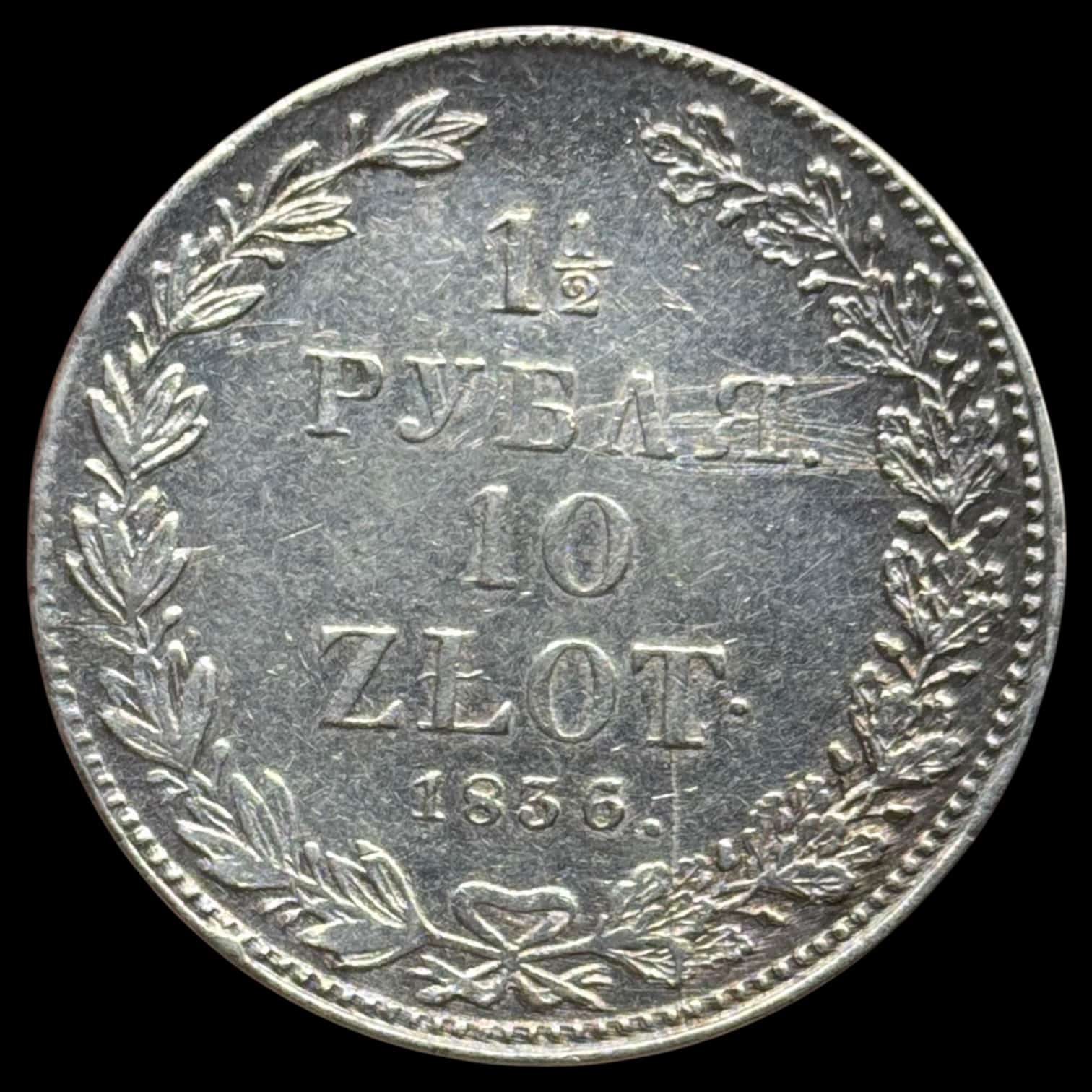 Polen / Rusland, 1 1/2 Rouble / 10 Zlotych 1834, Petersburg, Nicholas l, Bitkin 1086, Plage 318, Kva. 1+ “Renset”