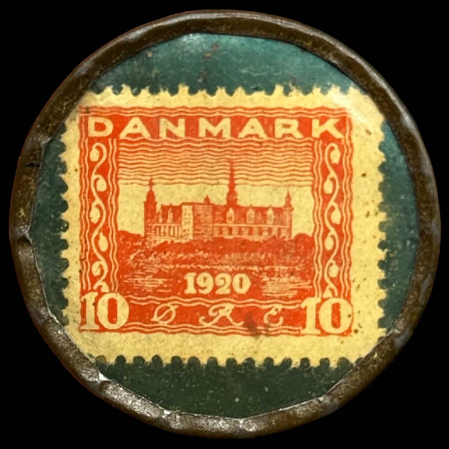 Postskillemønt, 10 øre CAPSTAN, Grøn baggrund, Kva. 1+