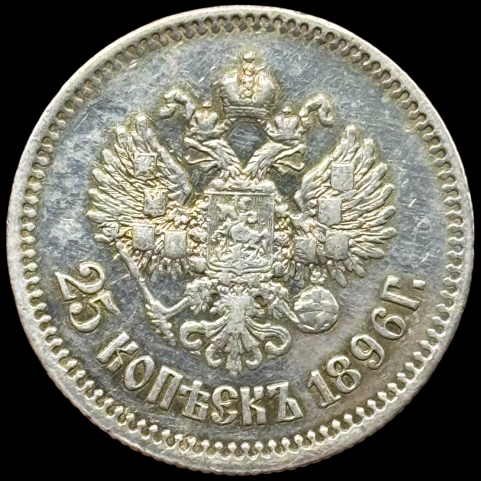 Rusland, 25 kopeks 1896, St. Petersburg, KM / Y 57, Kva. 01, Kraftig renset.