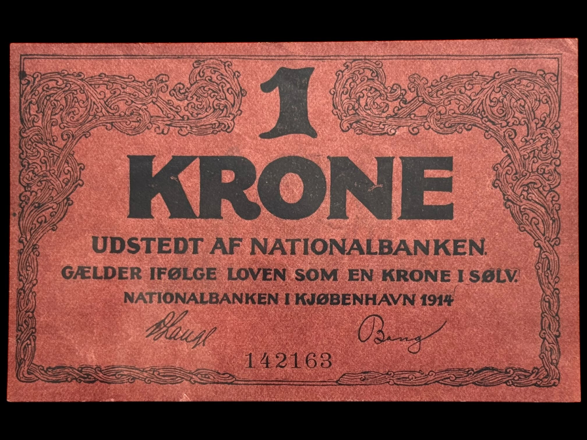 1 krone 1914 Klipfisk, V.Lange/Bang, Nr. 142163, Sieg 115, DOP 110, Pick 10 Kva. 0-01