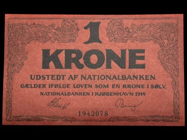 1 krone 1914 Klipfisk, V.Lange/Bang, Nr. 1942078, Sieg 115, DOP 110, Pick 10 Kva. 0
