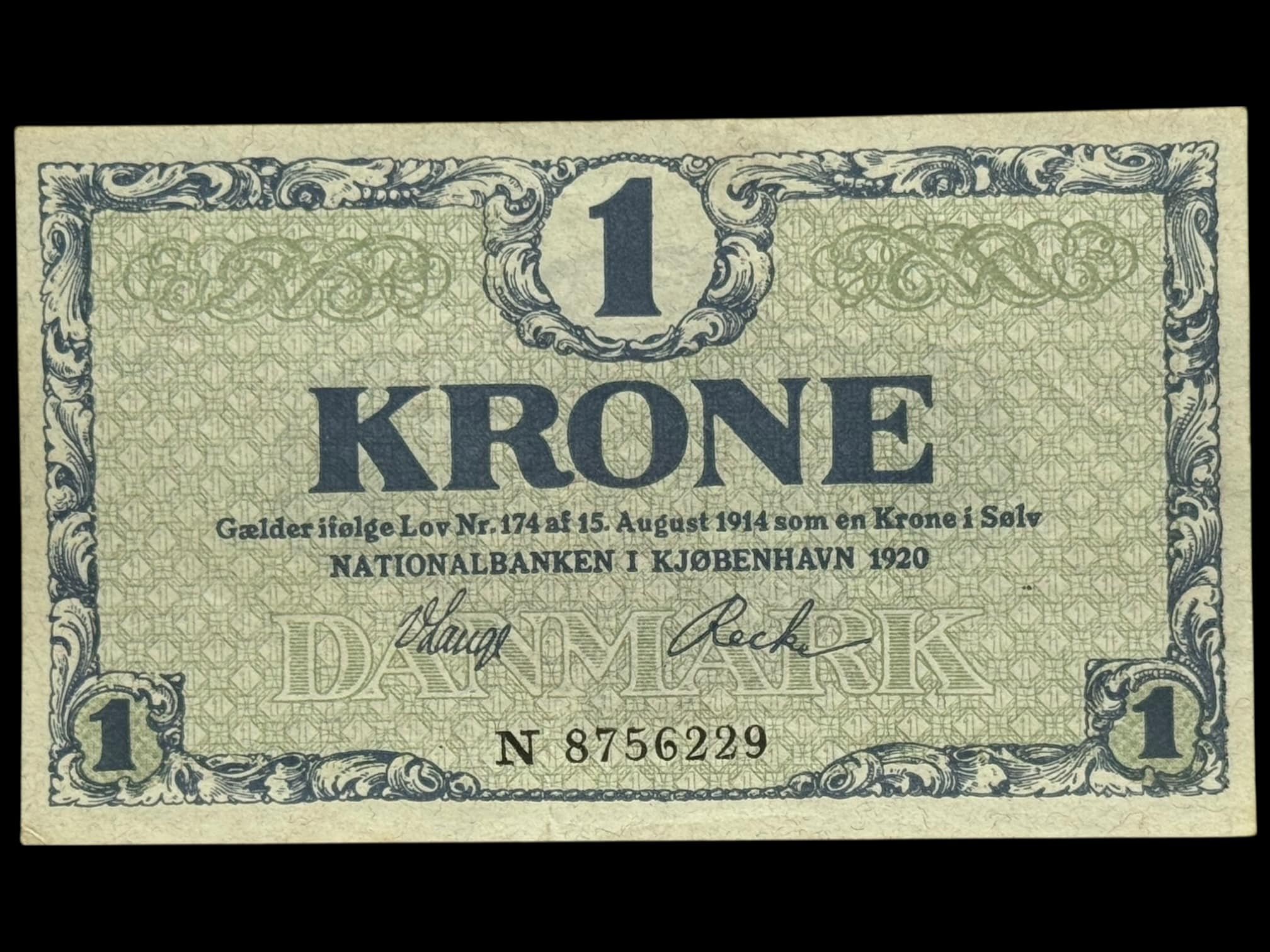 1 krone 1920 N, V.Lange/Recke, Nr. 8756229, Sieg 117, DOP 112, Pick 12 Kva. 0