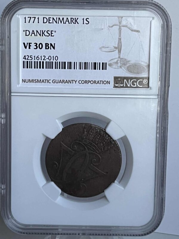 1 skilling 1771, Kva.1+ , Stavefejl “DANKSE”
