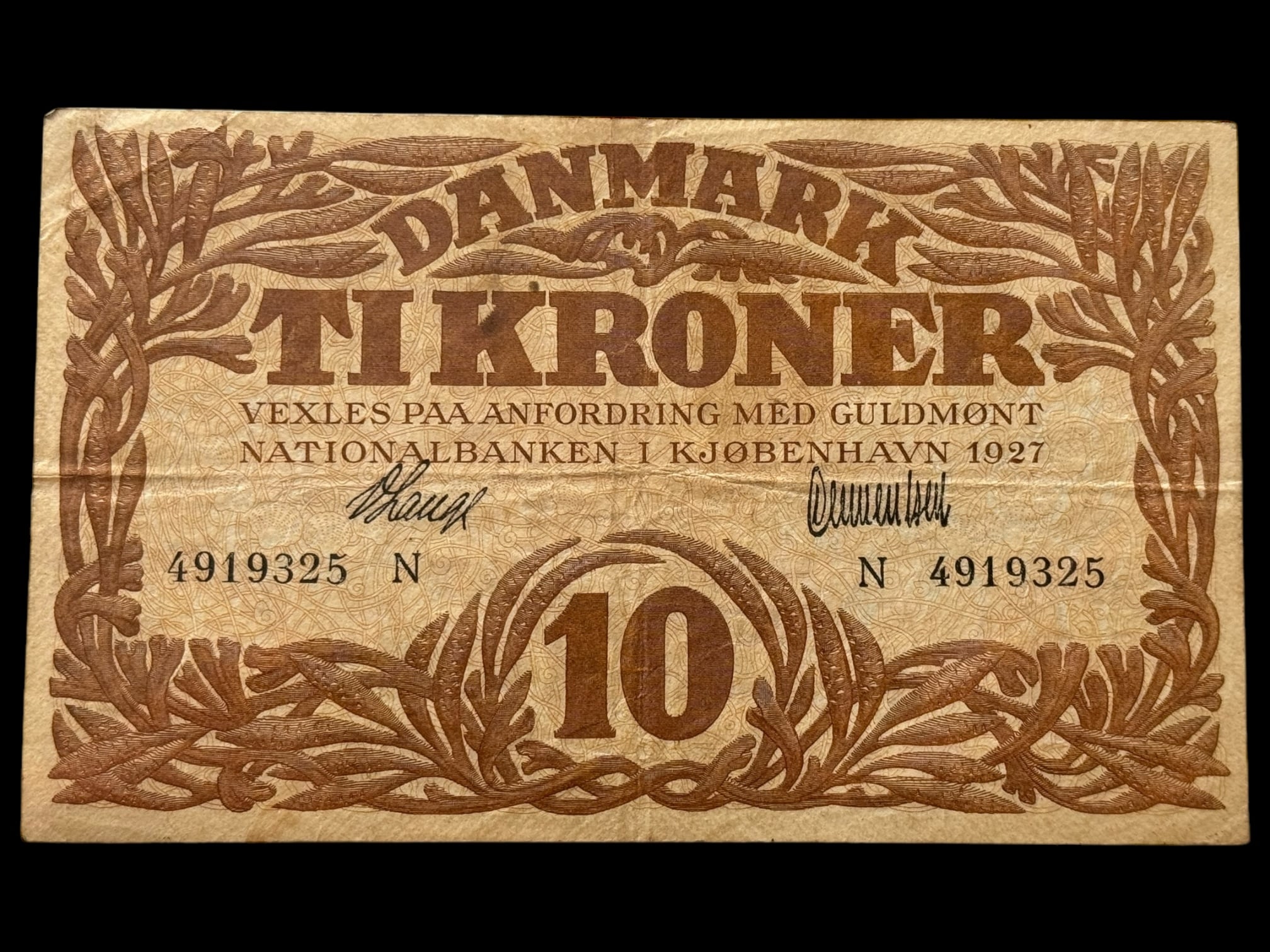 10 krone 1927 N V.Lange/Clementsen Kva. 1++