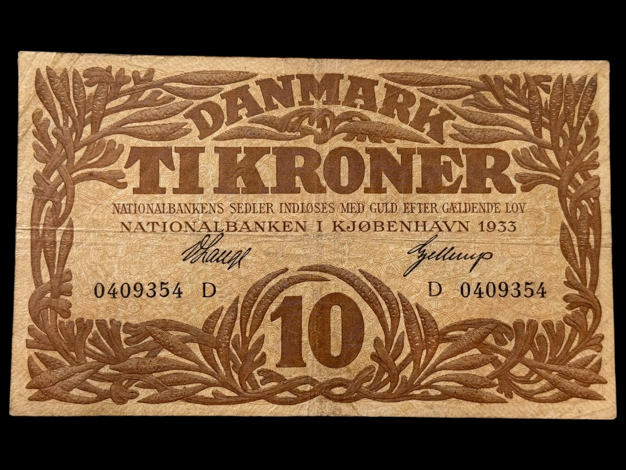 10 krone 1933 D V.Lange/Gellerup Kva. 1-1+