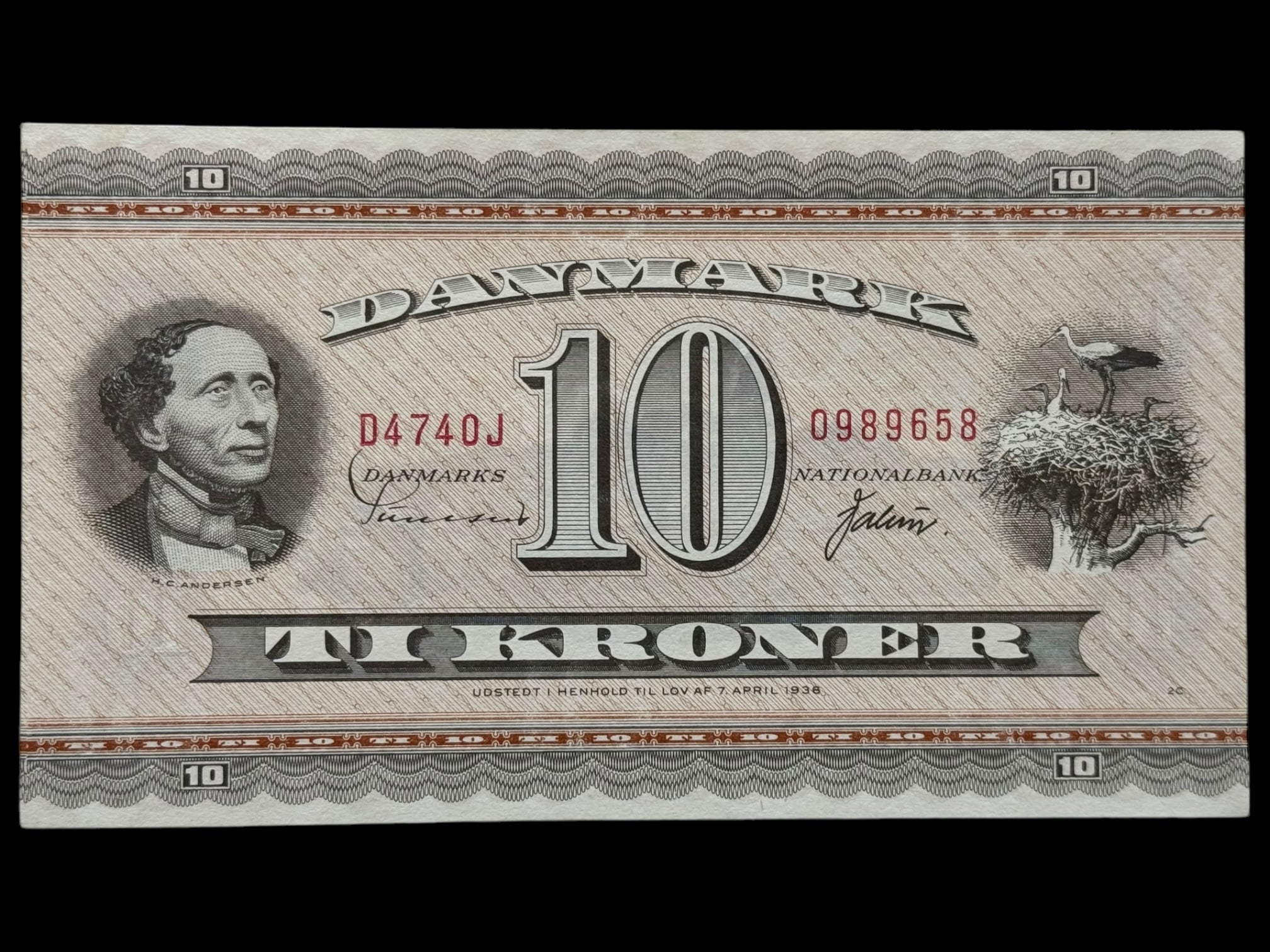 10 krone 1974 D4 0J, Erstatningseddel, Sunesen/Valuer, Sieg 133, Pick 44, Kva. 0