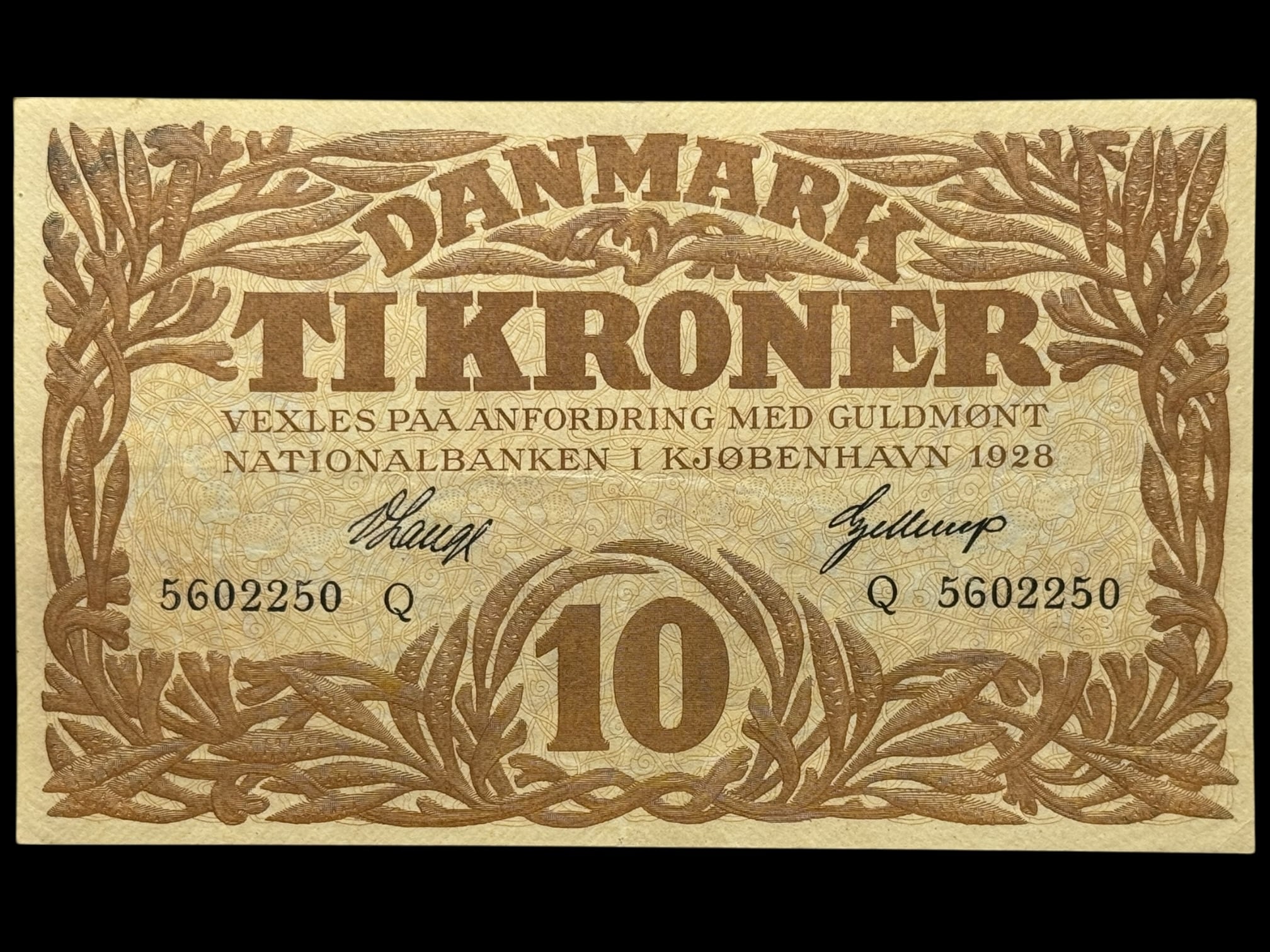 10 kroner 1928 Q, V.Lange/Gellerup, Nr. 5602250, Sieg 103, DOP 114, Pick 21, Kva. 01