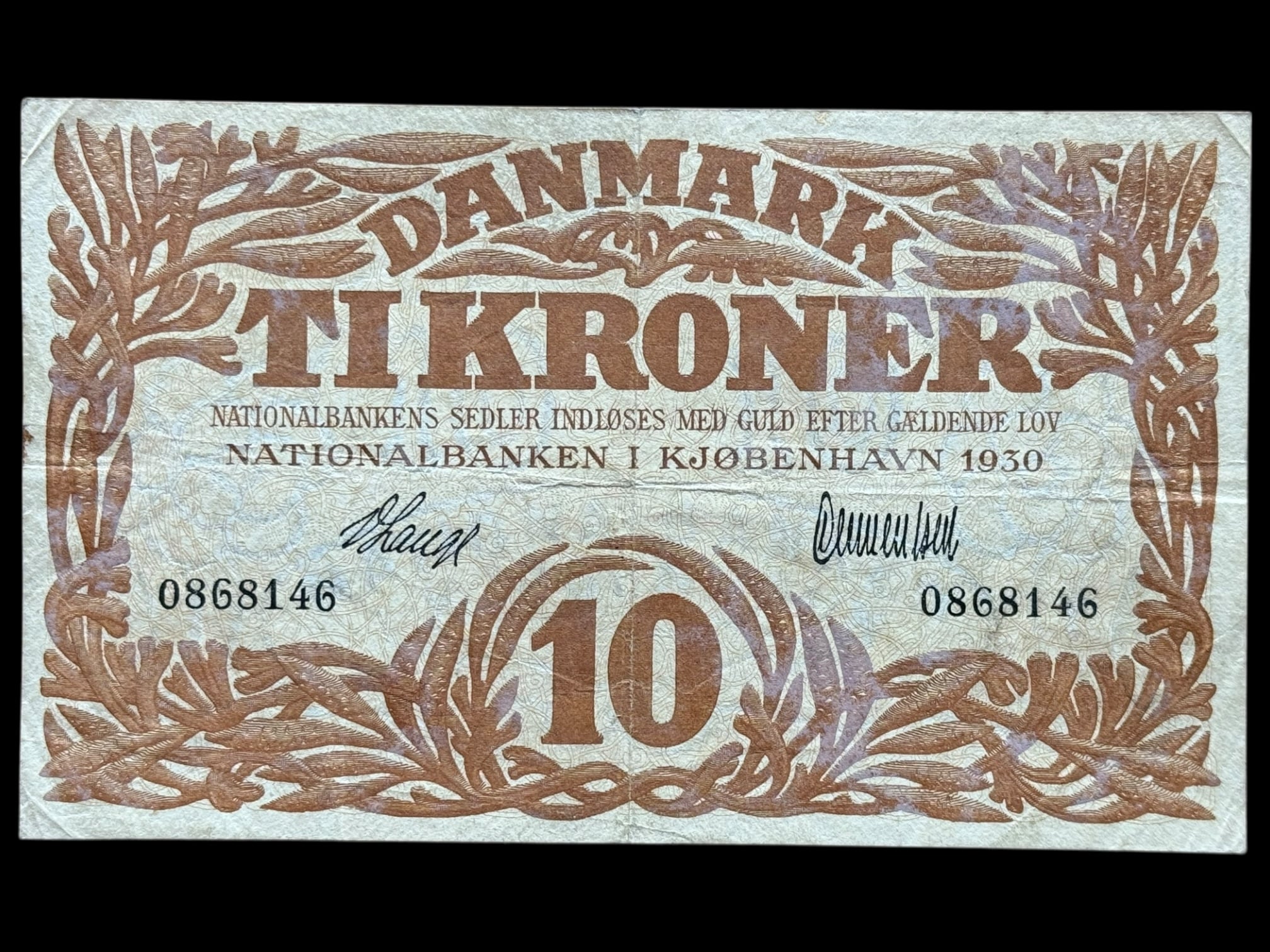 10 kroner 1930, V.Lange/Clementsen, Nr. 0868146, Sieg 104, Pick 26, DOP 119, Kva. 1-1+