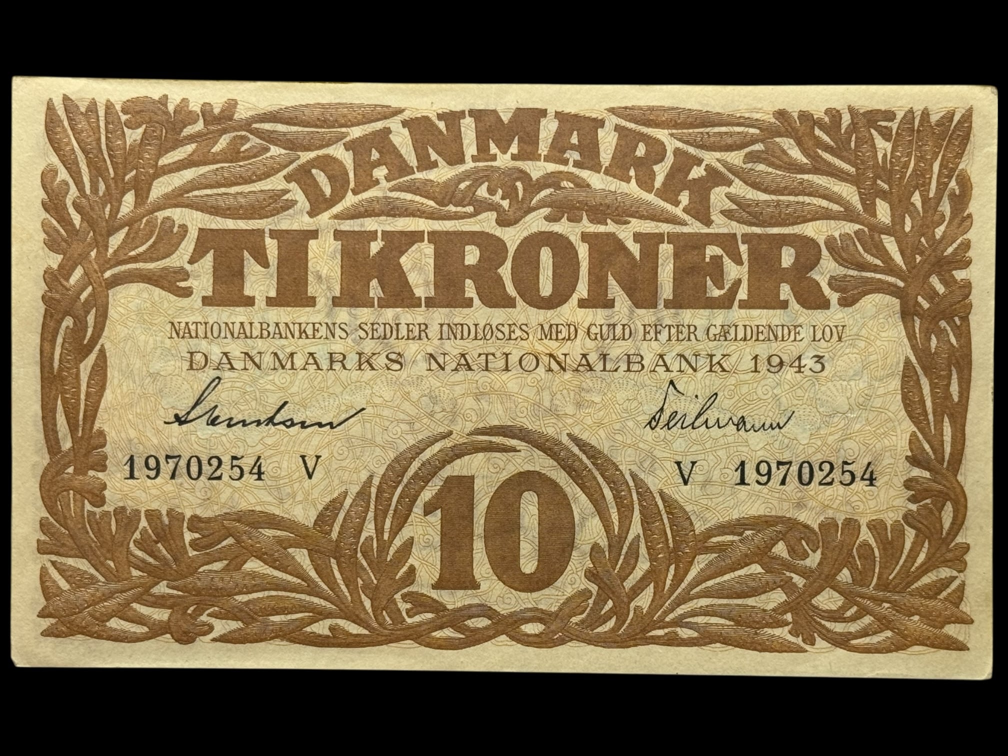 10 kroner 1943 V, Svendsen/Teilmann, Nr. 1970254, Sieg 105, DOP 124, Pick 31, Kva. 01