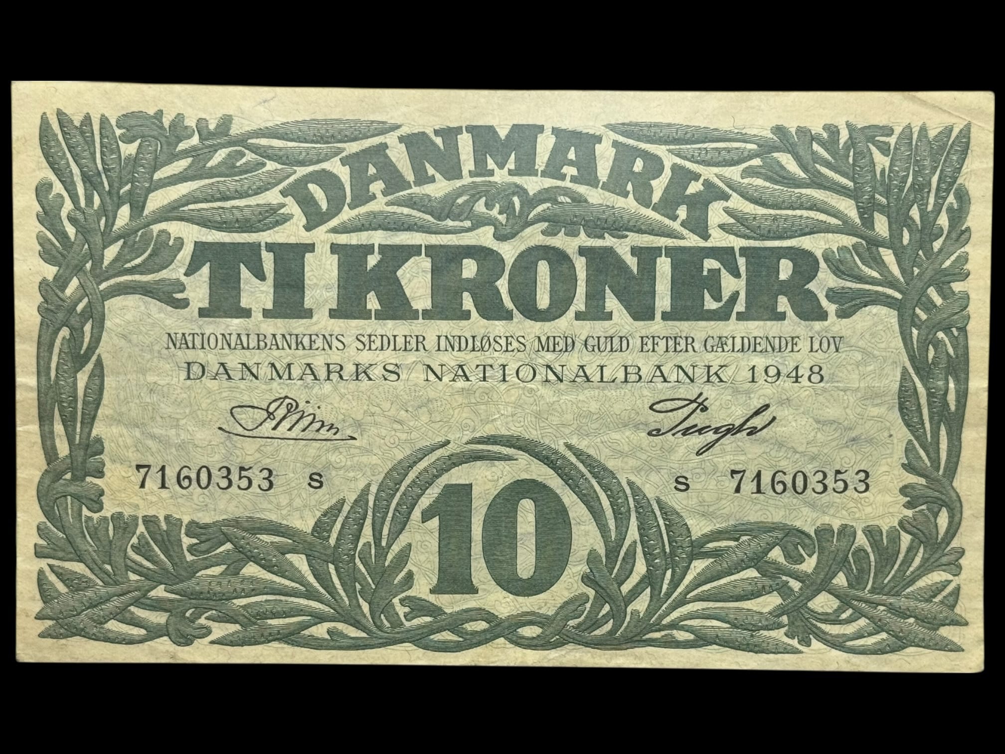 10 kroner 1948 s, Riim/Pugh, Nr. 7160353, Sieg 122, DOP 131, Pick 37, Kva. 1+