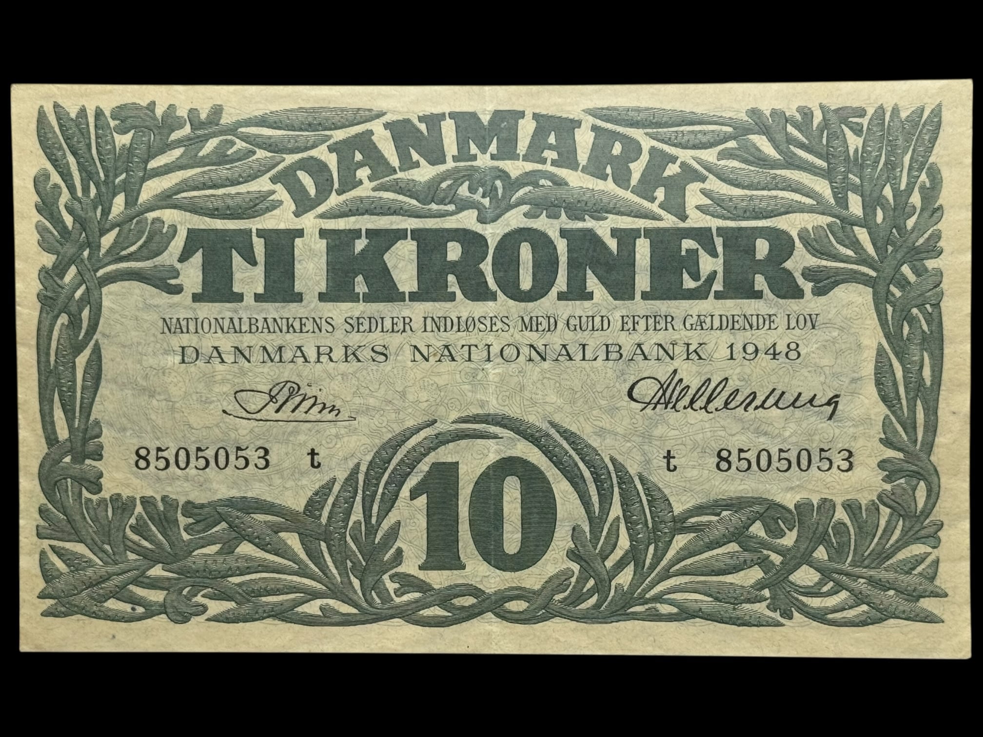 10 kroner 1948 t, Riim/Hellerung, Nr. 8505053, Sieg 122, DOP 131, Pick 37, Kva. 01