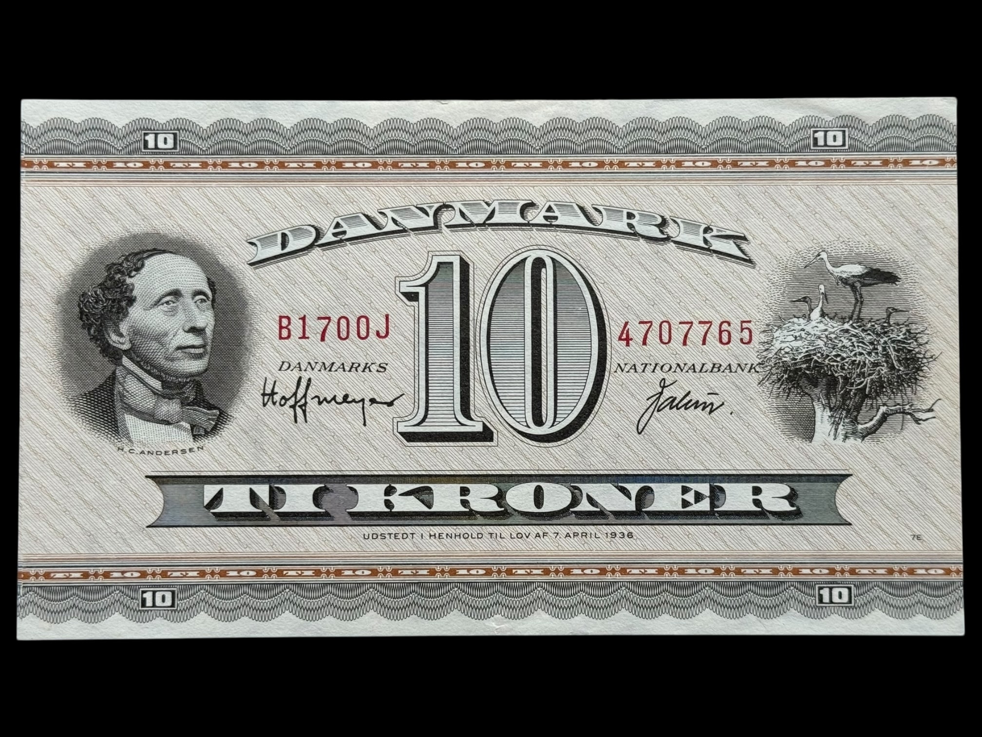 10 kroner 1970 B1 0J, Valuer/Hoffmeyer, Nr. 4707765, Sieg 133, DOP 142, Pick 44, Kva. 0-01