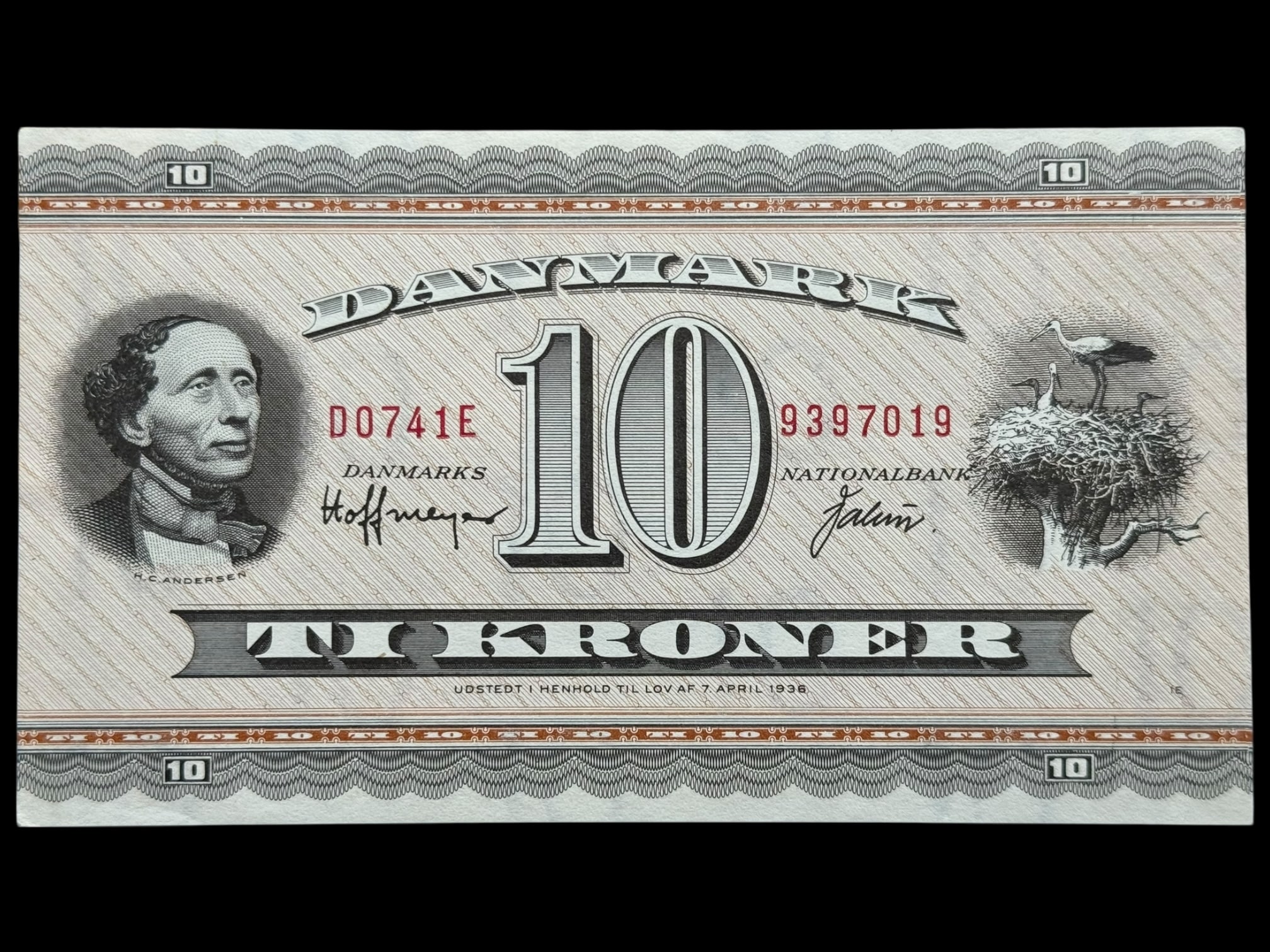 10 kroner 1974 D0, Valuer/Hoffmeyer, Nr. 9397019, Sieg 133, DOP 142, Pick 44, Kva. 0-01