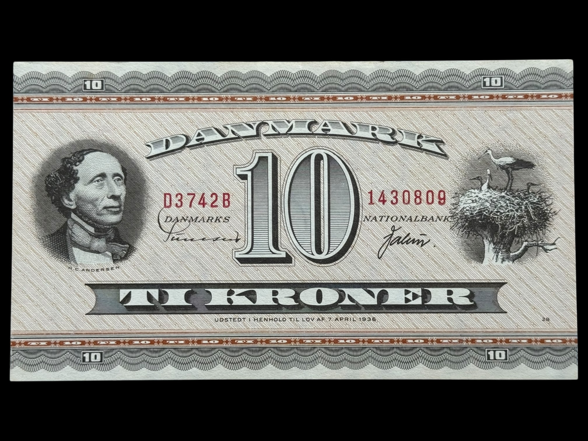 10 kroner 1974 D3, Valuer/Sunesen, Nr. 1430809, Sieg 133, DOP 142, Pick 44, Kva. 0-01