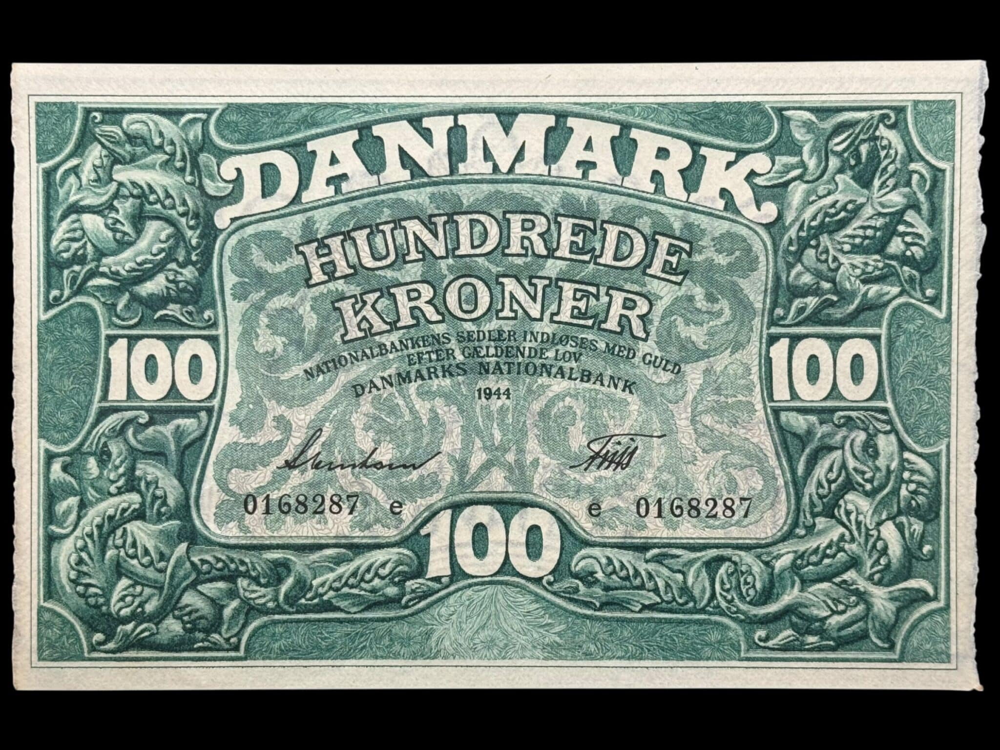 100 kroner 1944 e,Svendsen/Friis , Nr. 0168287, Sieg 125, DOP 134, Pick 39, Kva. 0