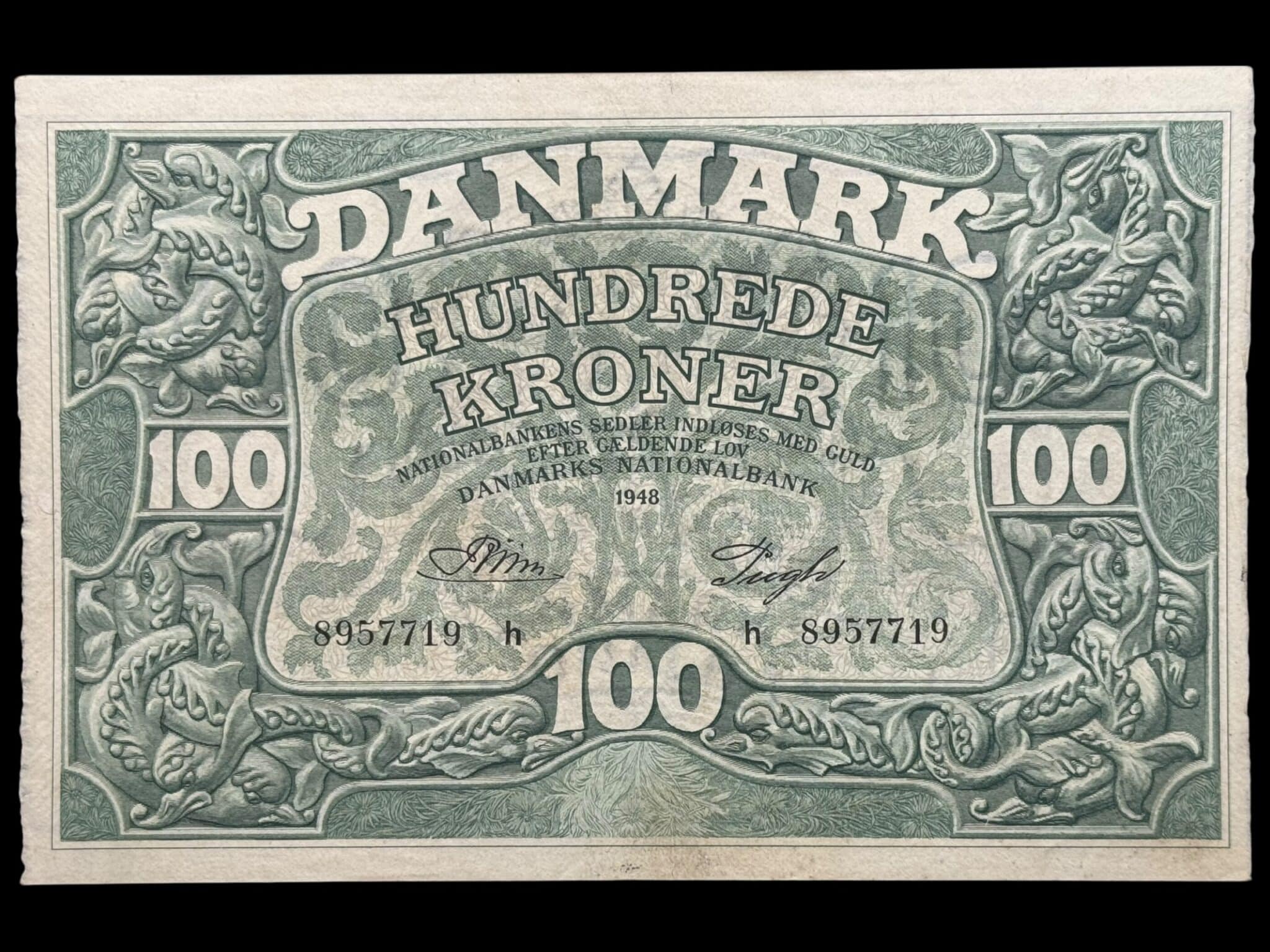 100 kroner 1948 h, Riim/Pugh , Nr. 8957719, Sieg 126, DOP 135, Pick 39, Kva. 0 “lidt beskidt”