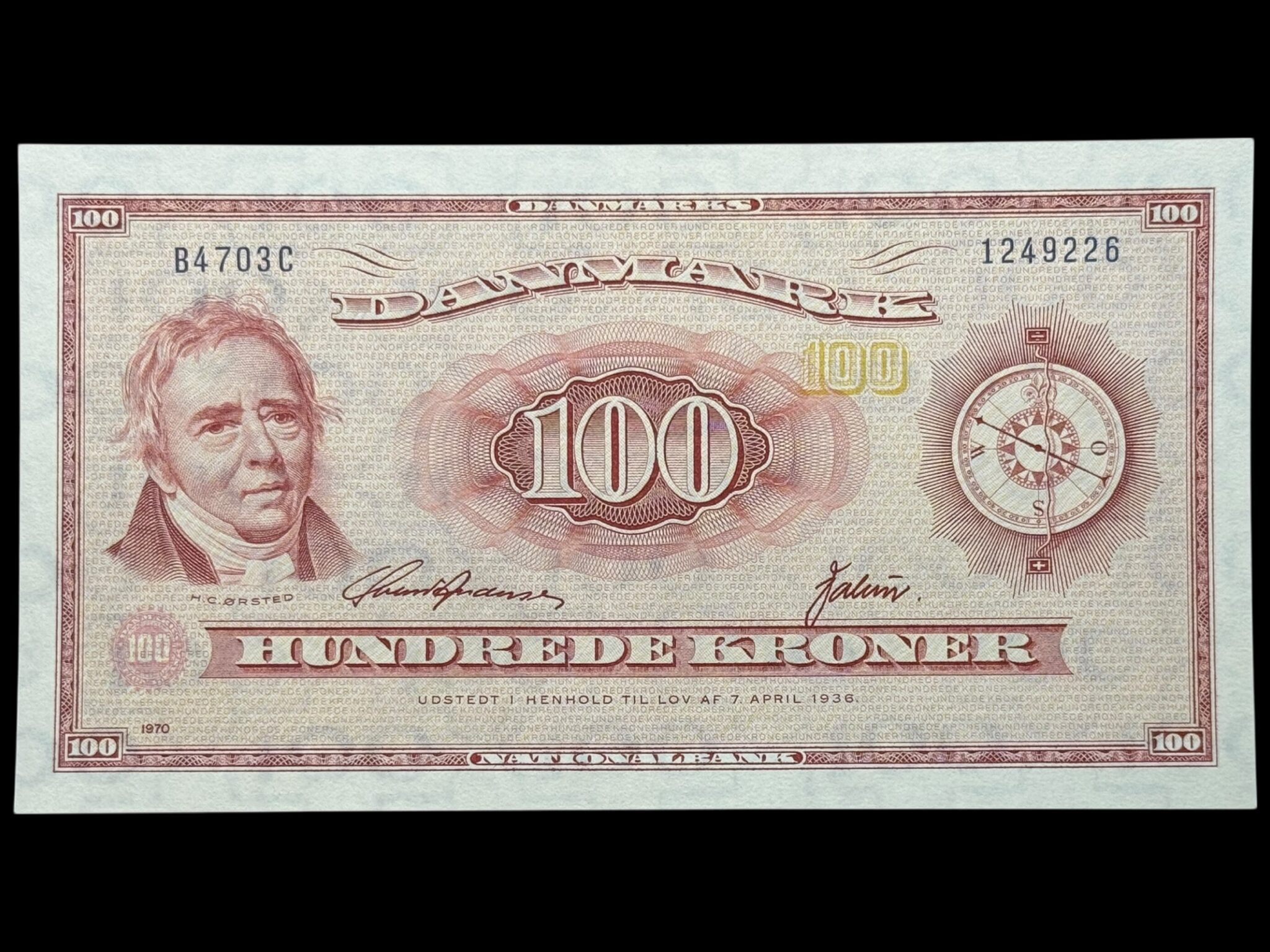 100 kroner 1970 B4, Valuer/Svend Andersen, Nr. 1249226, Sieg 137, DOP 146, Pick 46, Kva. 0