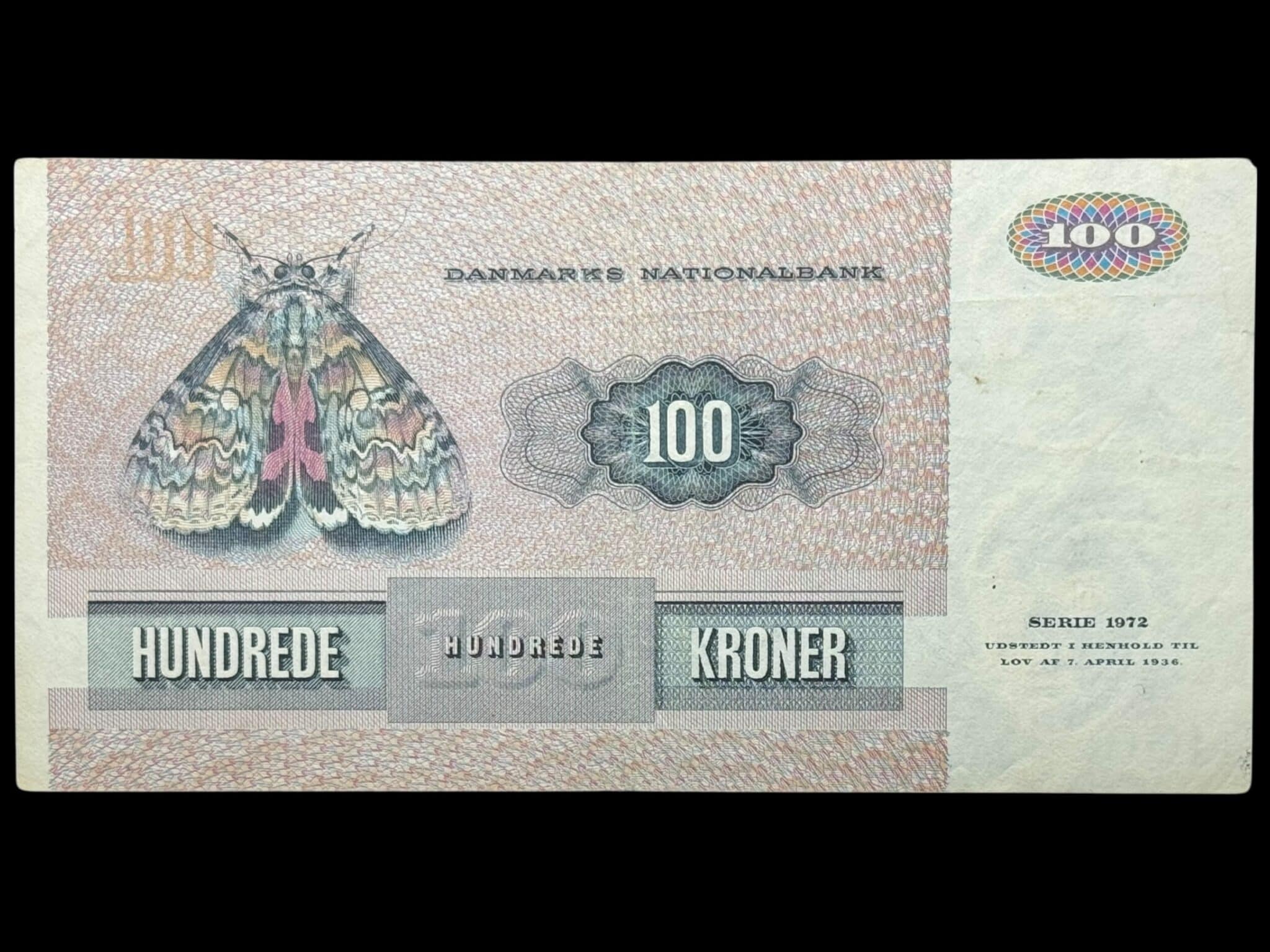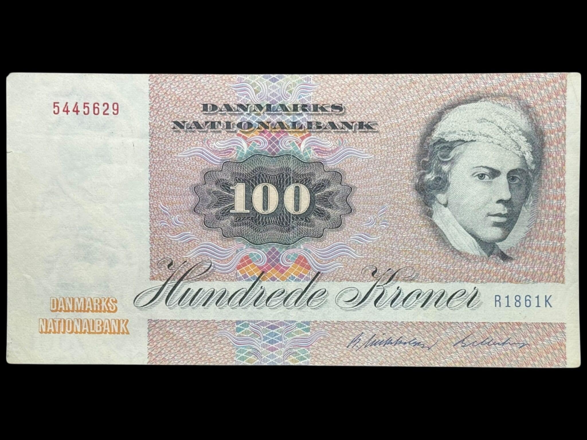 100 kroner 1986 R1, Billestrup/R. Mikkelsen, Nr. 5445629, Sieg 142, DOP 151, Pick 51, Kva. 1-1+