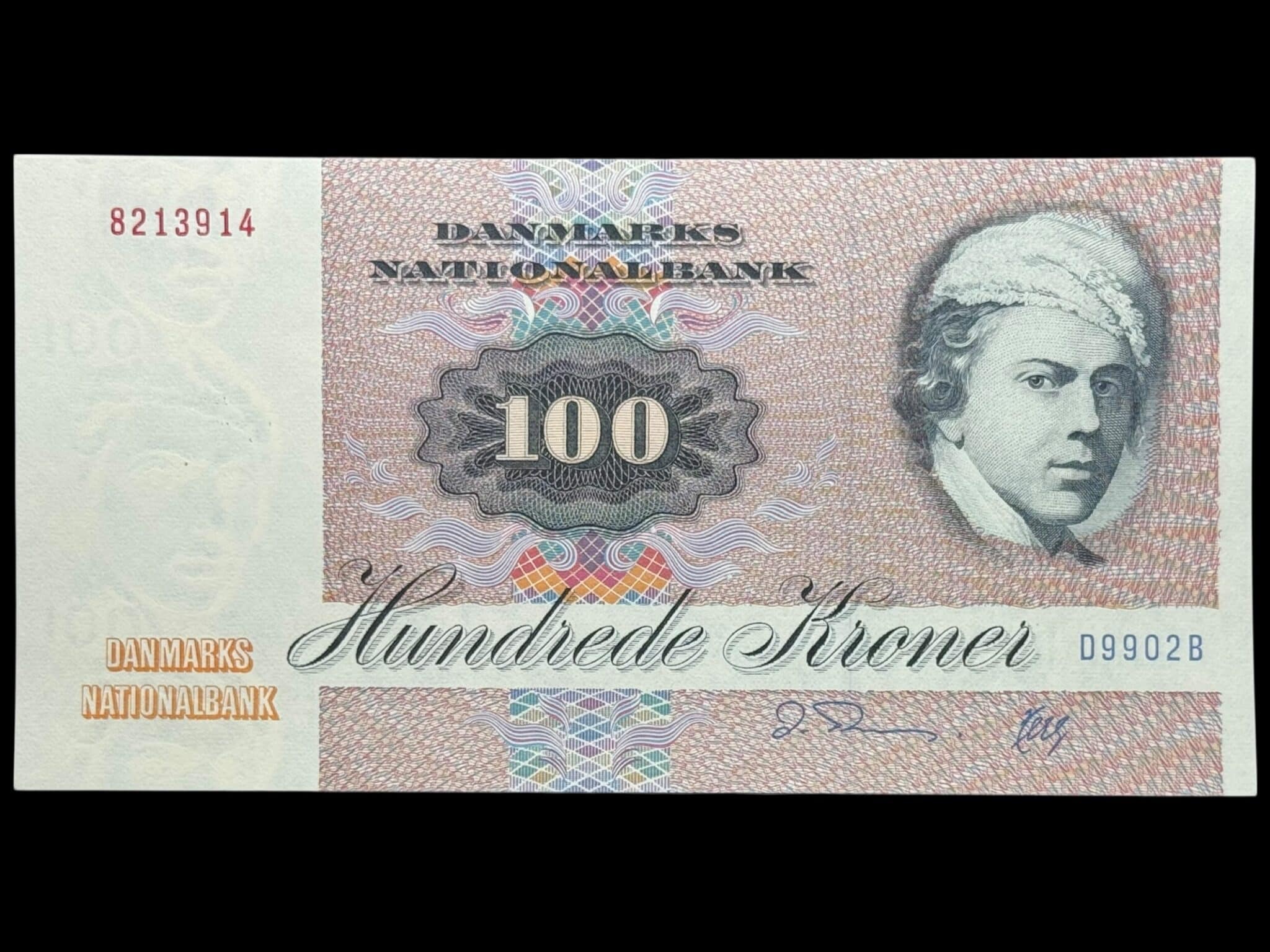 100 kroner 1990 D9, Herly/O. Thomasen, Nr. 8213914, Sieg 142, DOP 151, Pick 51, Kva. 0