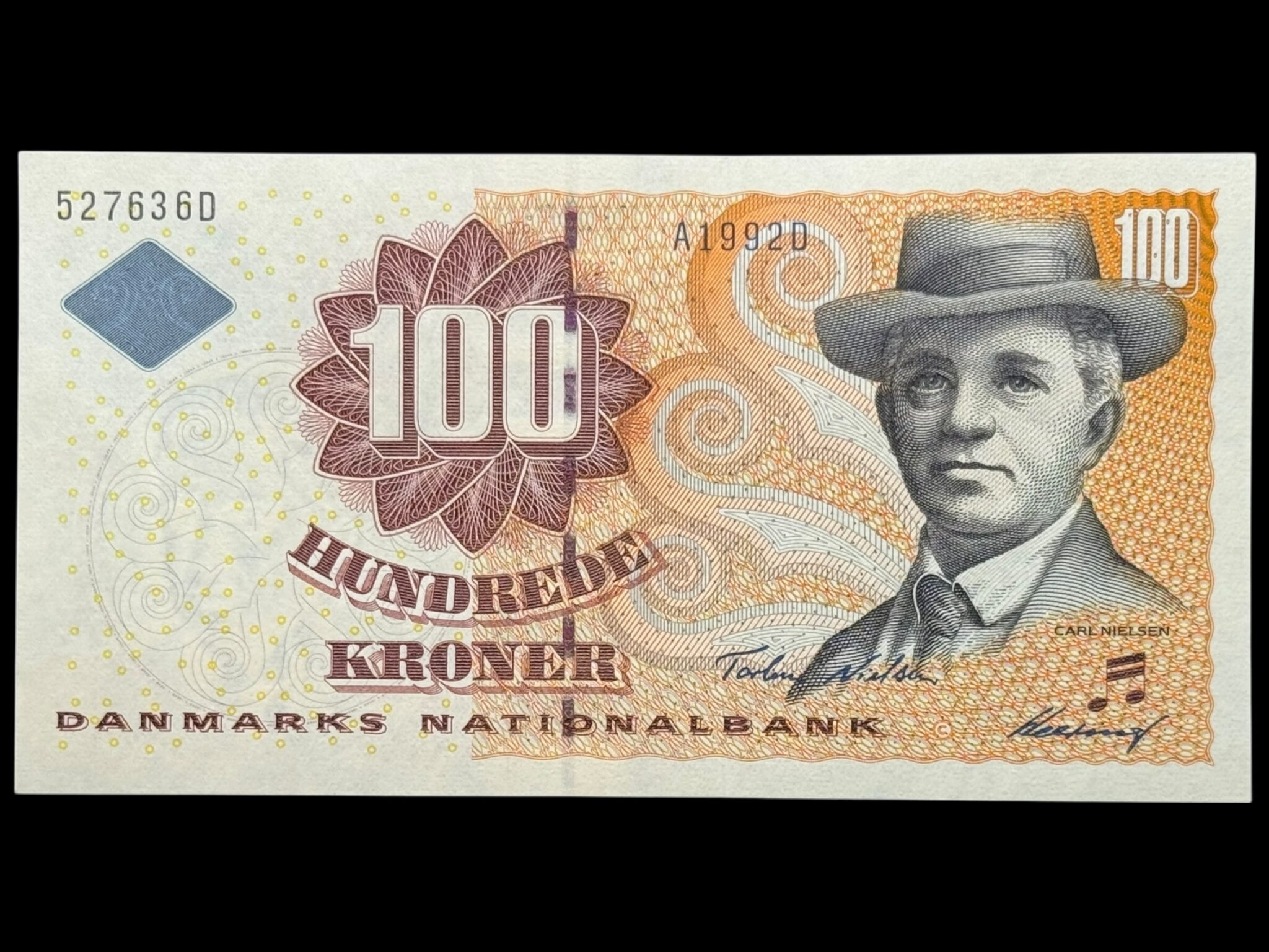100 kroner 1999 A1, Heering/Torben Nielsen, Nr. 527636D, Sieg 147, Pick 56, Kva. 0