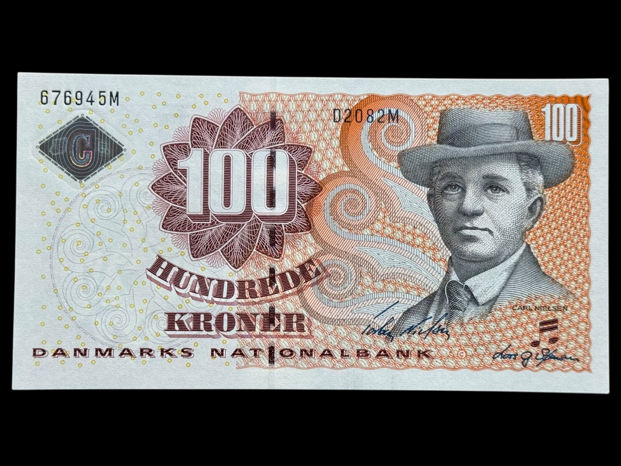 100 kroner 2008 D2, Lars G. Sørensen/Torben Nielsen, Nr. 676945L-M, Sieg 152, Pick 61, Kva. 0 “Modelfoto”