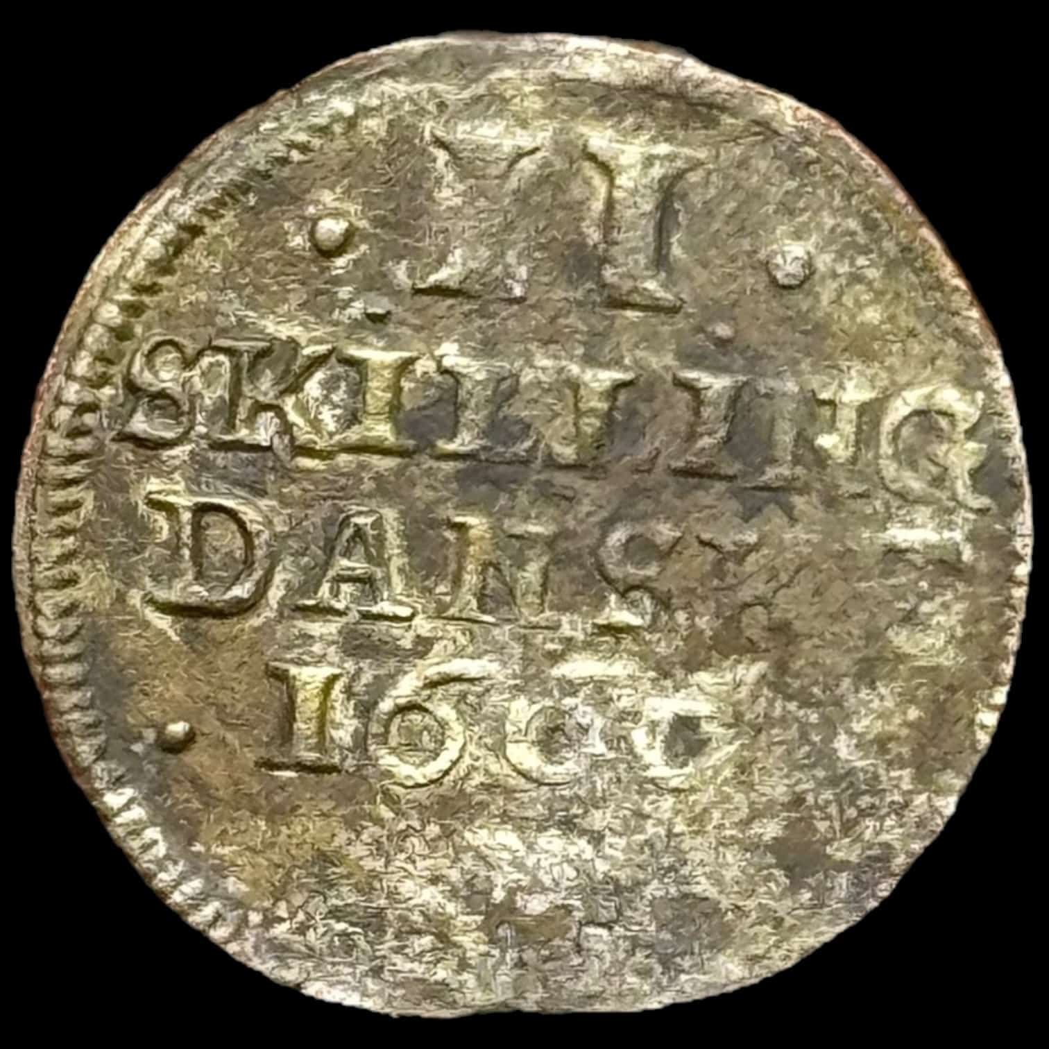 1666, 2 skilling, Fre.lll, Sieg 21.3 Hede 138C, Kva. 1 “Korr” Sjælden