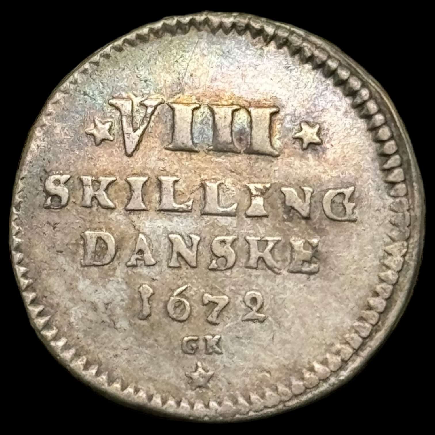1672, 8 skilling, Chr.lV Kva. 1+ Ex. PHK