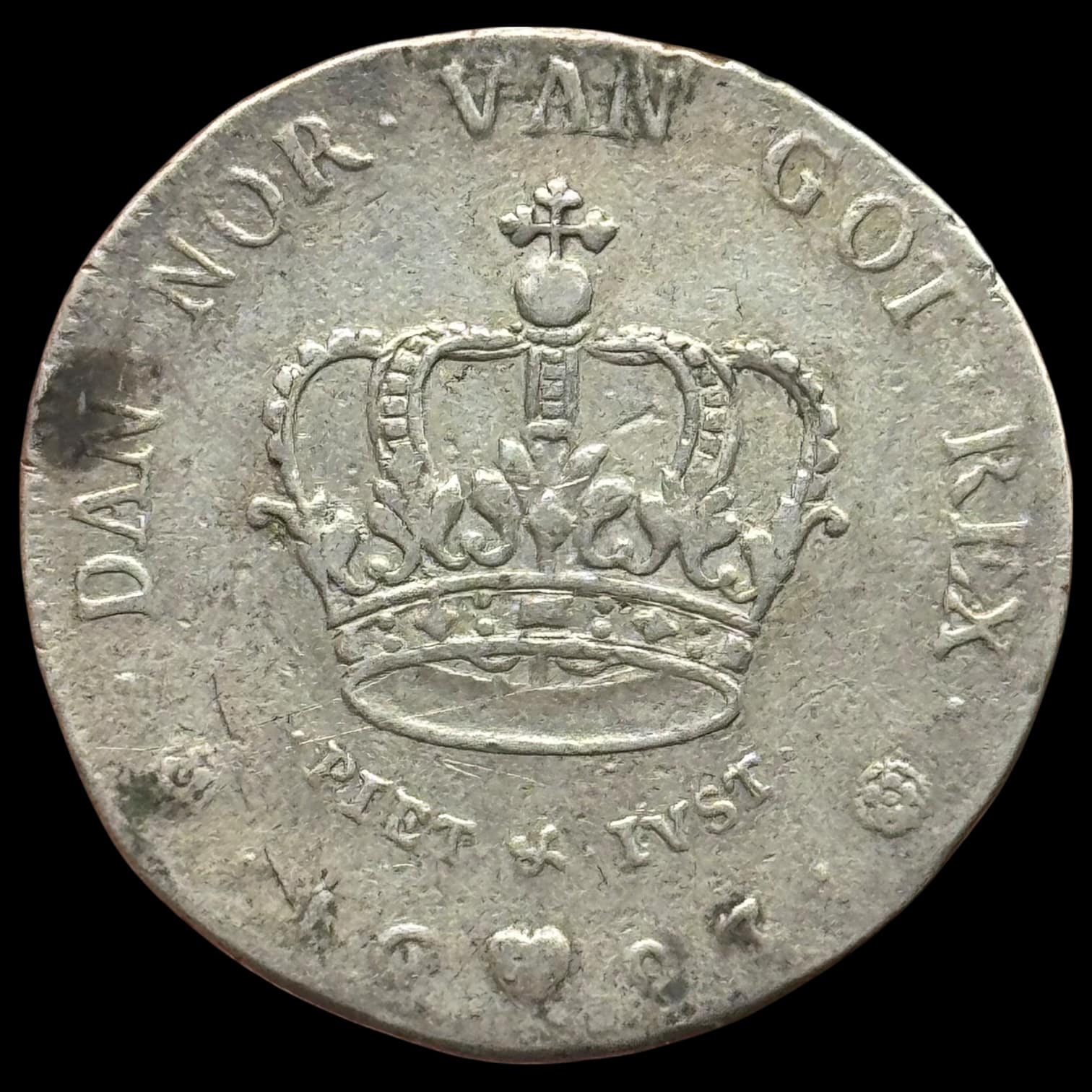 1693, krone, Chr.V, Sieg 51.1, Hede 99A, Schou 30, Sjælden variant med store rossetter, Kva. 1-1+ “Monteringspor på rand” Ex. BR 889/295
