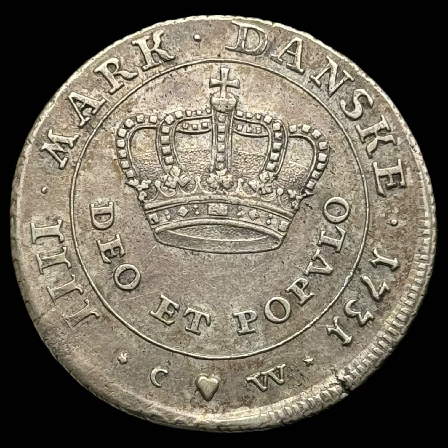 1731, 1 krone “lille krone” Chr.Vl Kva. 1+
