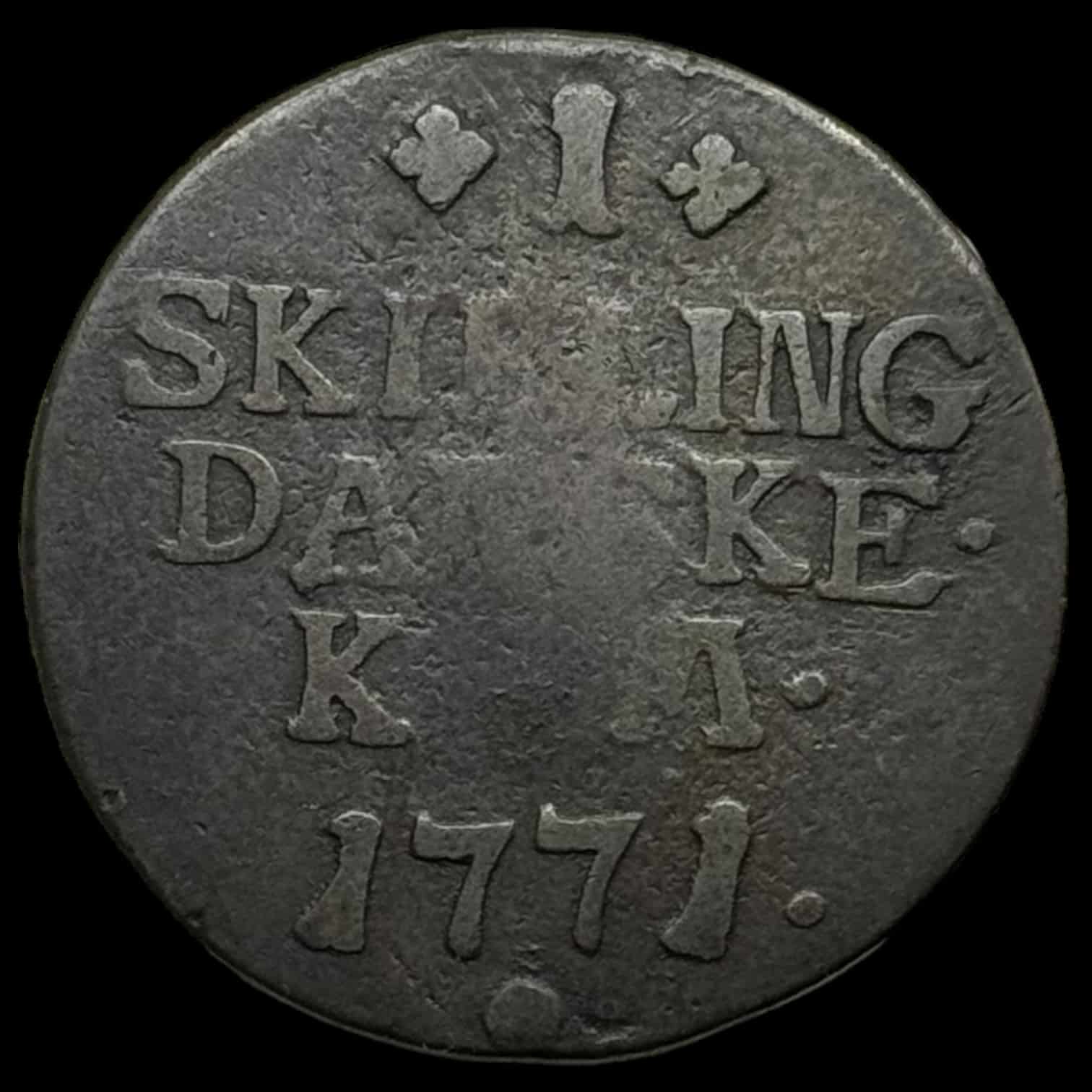 1771 1 skilling Chr.Vll Kva. 1 “stavefejl SKISLING”