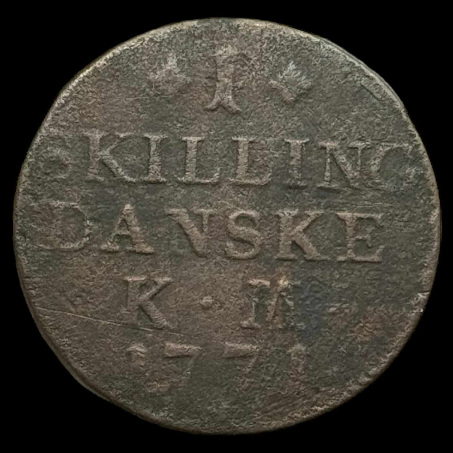1771 1 skilling Chr.Vll Kva. 1 Rullende C’er
