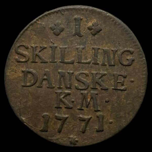 1771, 1 skilling Chr.Vll, Sieg 2.1 Hede 37, Kva. 1+
