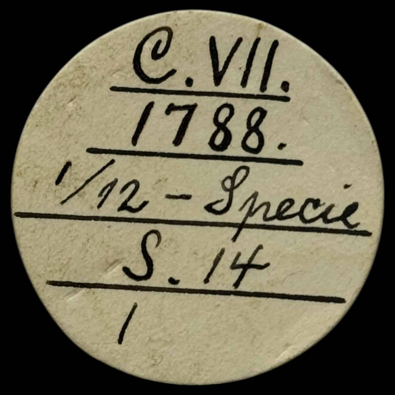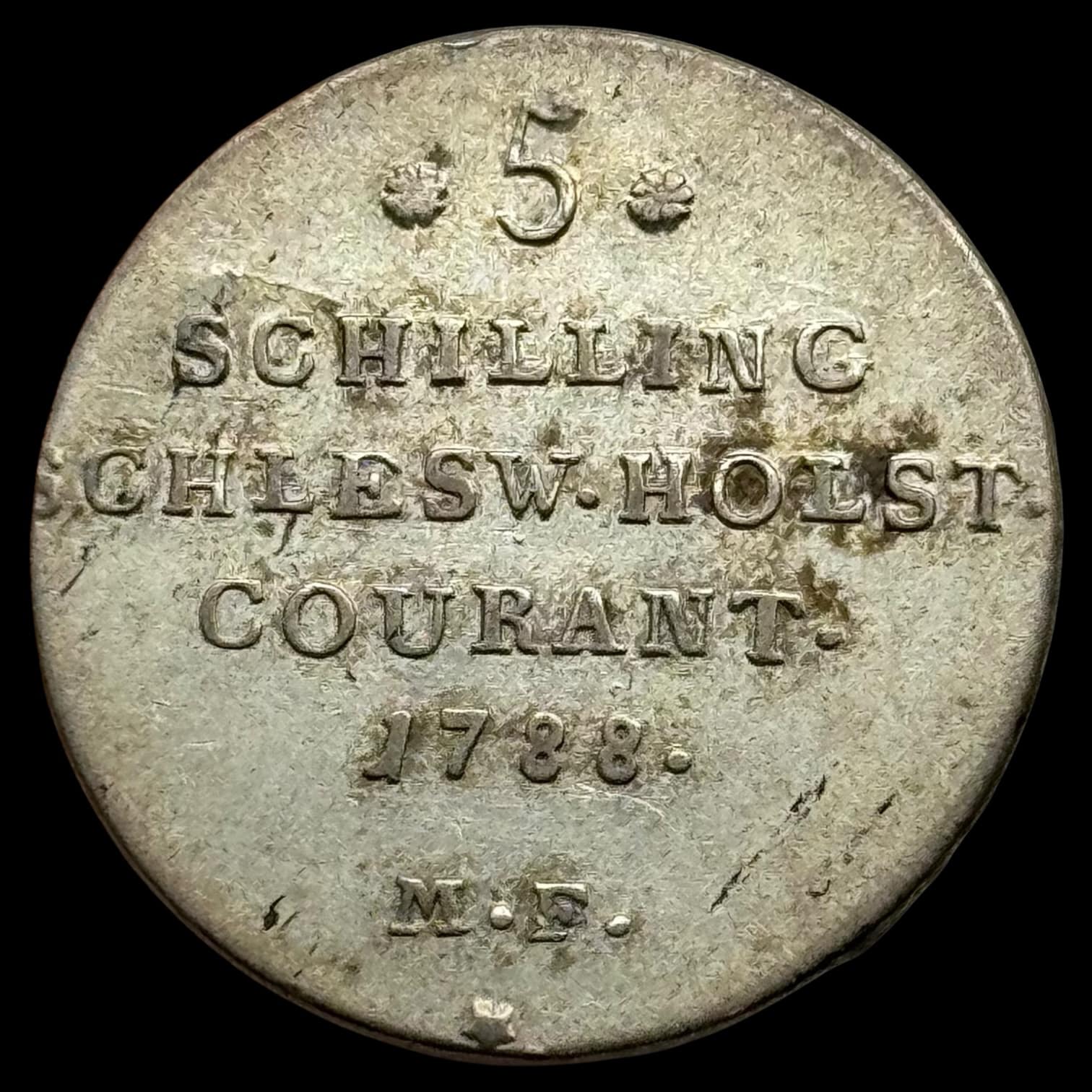 1788, 5 Schilling / 1/12 speciedaler, Slesvig Holsten, Chr.VII, Sieg 41 Hede 43, Kva. 1+, Ex. Zinck, Samler etiket medfølger