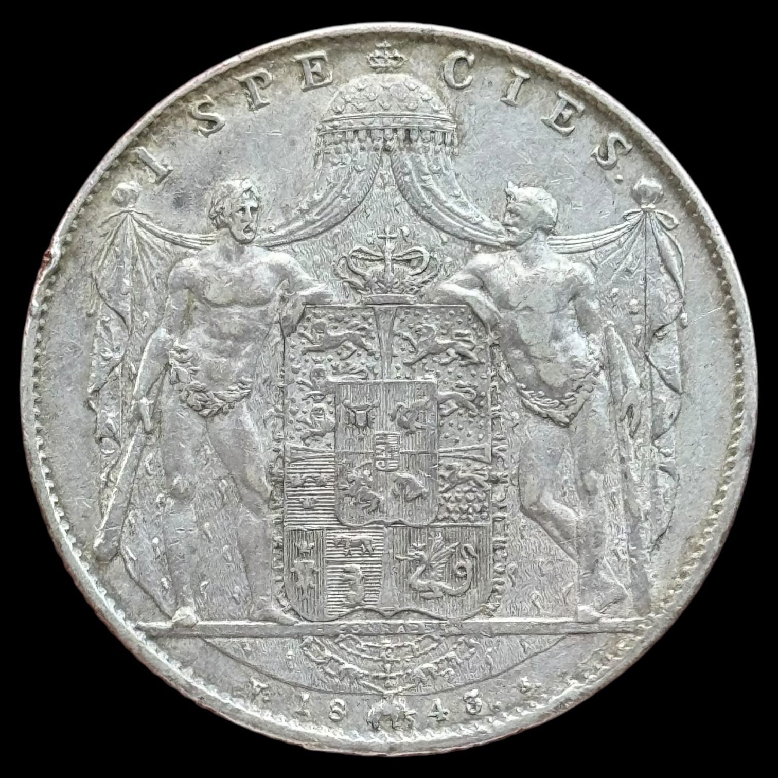 1843 VS, 1 speciedaler, Chr.VIII, Sieg 13.6, Hede 3E, Kva. 1+ “ks”