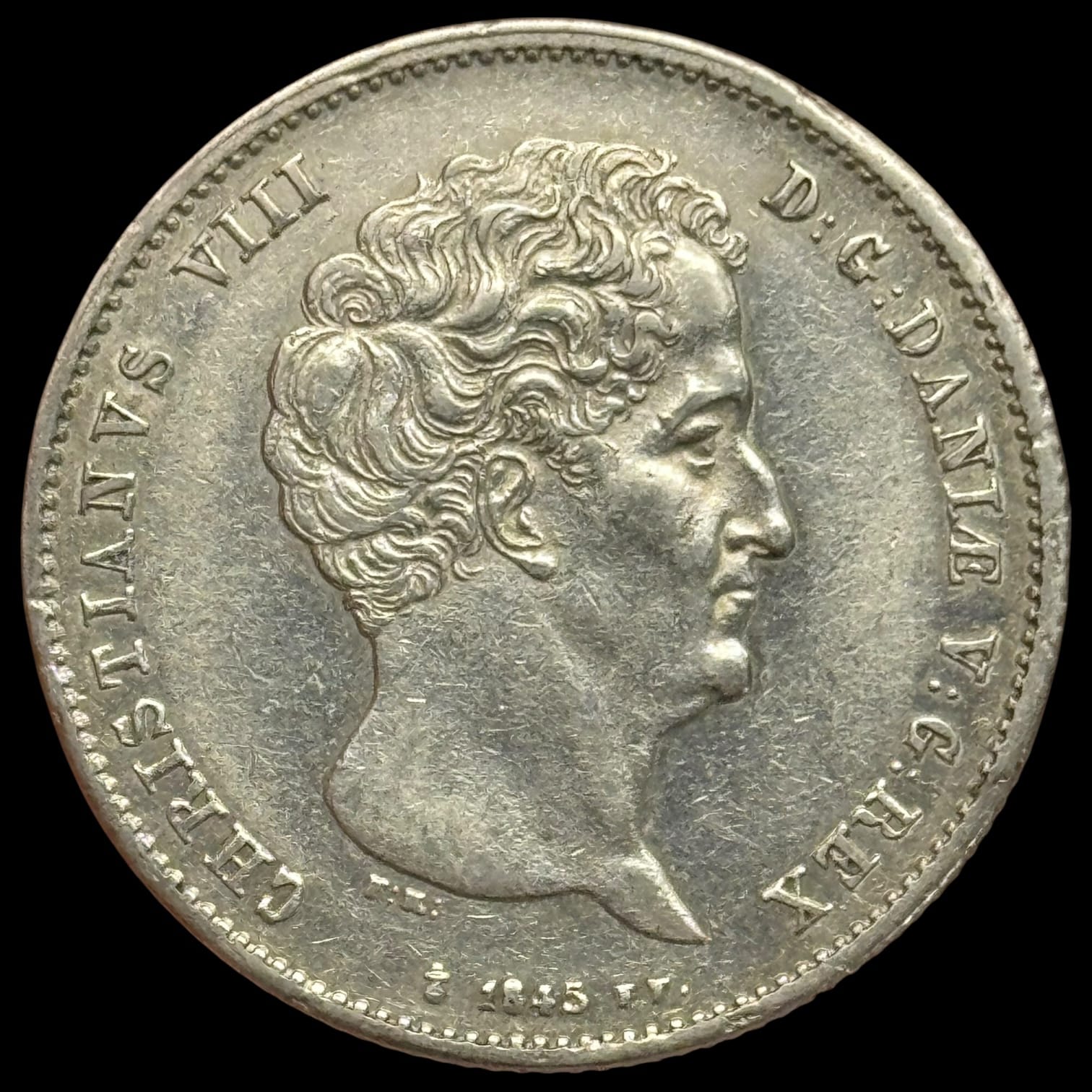 1845 FF, 1 rigsbankdaler, Chr.VIII, Sieg 12.2, Hede 4B, Kva. 1+