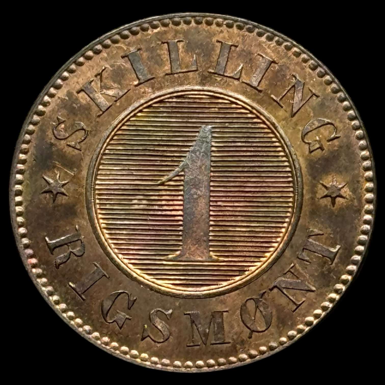 1856, 1 skilling, Fre.VII, Krone som møntmærke, Sieg 9.1, Hede 16A, Kva. Prooflike / Medaljepræg, Prøvemønt