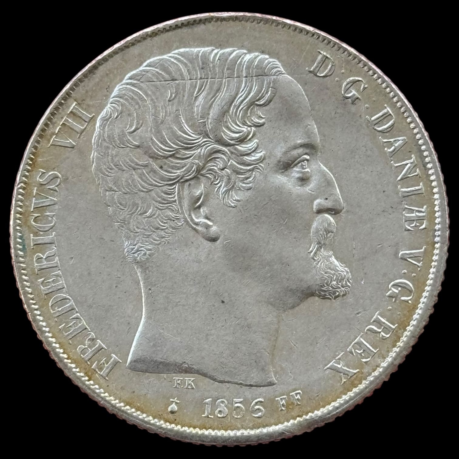 1856 FF, 2 Rigsdaler, Fre.VII, Sieg 14.2, Hede 6B, Kva. 01 “Ar” Sjælden